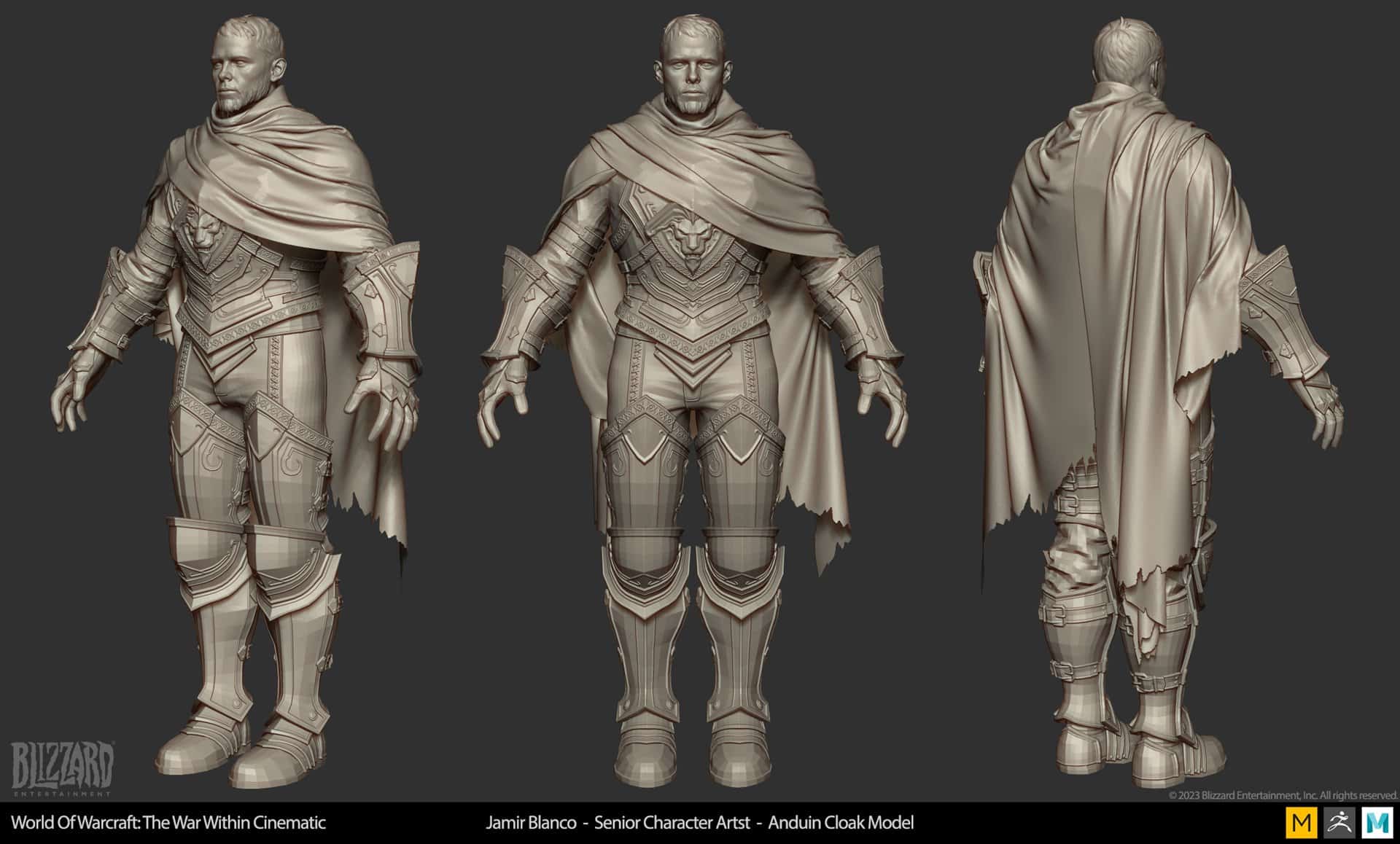 所幸這次一些演出有表現出那種像是軍人的心理創傷,引起了共鳴,而受到玩家青睞。當然製作動畫另一個重點就是各種模組的表現,把幻想世界的東西如何帶入現實的感覺該怎麼設計?這點可以從模組的外觀去注意,例如《魔獸世界:地心之戰》短片的人物服裝,從最內部的貼身衣物到外層的金屬紥實設計、頭身比例都要調整;甚至皮膚表現要分很多層去做,血、髒污、傷痕等等都是一層。