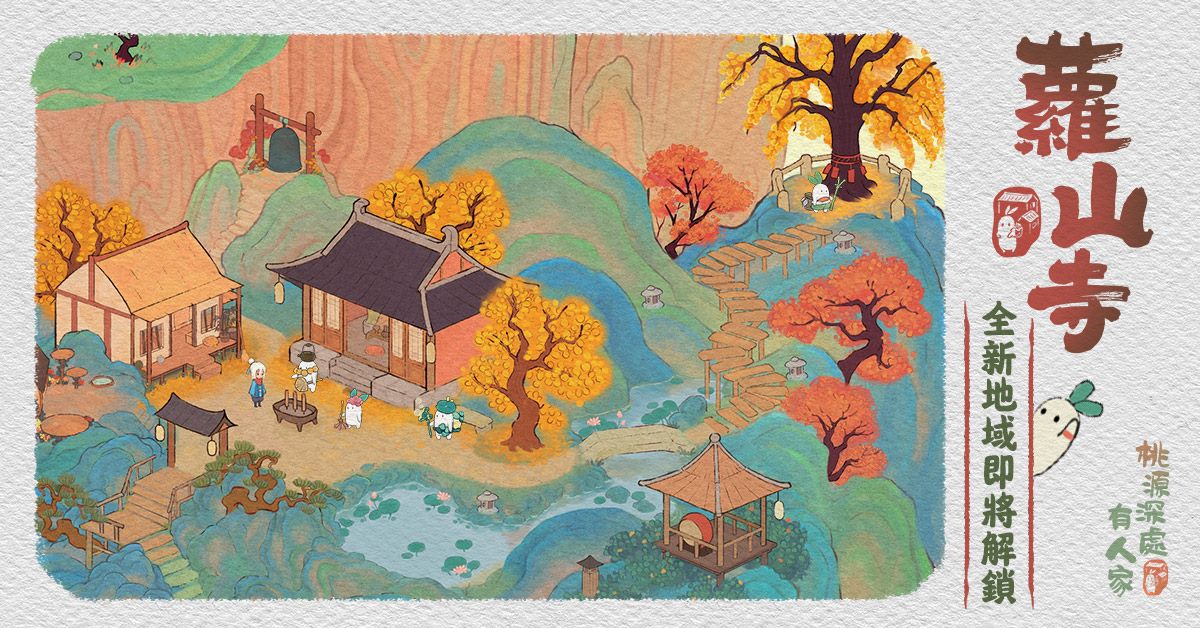 星宿科技正式宣布,模擬經營手遊《桃源深處有人家》全新版本「山居問禪」上線,同時,遊戲內解鎖全新區域「蘿山寺」,修繕蘿山寺後可解鎖新建築藏經室及禪物坊。透過一日經玩法在藏經室可以獲取特殊物品,可在蘿山寺區域內的主殿、晨鐘、香爐、暮鼓進行使用。並增加自身的心境,心境到達一定等級後,就可以獲取不同獎勵。也可以透過消耗一定數量的資源在禪物坊工作,取得蘿山寺專屬建築,讓蘿蘿山變得更多彩多樣。