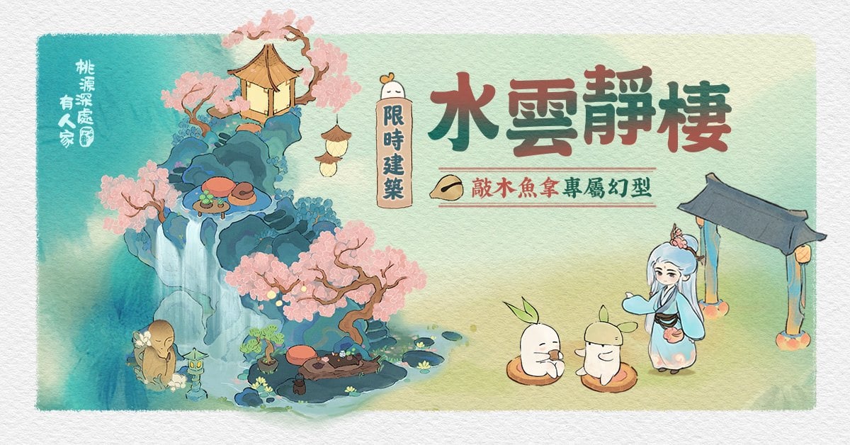 本期限時 UP 建築創物池將會上架甲等建築「水雲靜棲」,取得後可在瑤花瀑布旁打坐修行,把自己的感受永遠置頂,心有山海,靜而不爭。世事輪迴,因緣際會,一切皆有定數。建築 「水雲靜棲」一階可解鎖敲木魚功能,功德數達標後可解鎖神秘幻型 ; 二階解鎖品禪茶功能與打坐動作,四階時可以解鎖靜坐思,來到新空間選擇喜歡的音樂打坐修行。進階到十階「水雲靜棲」還會有額外禪意小彩蛋。