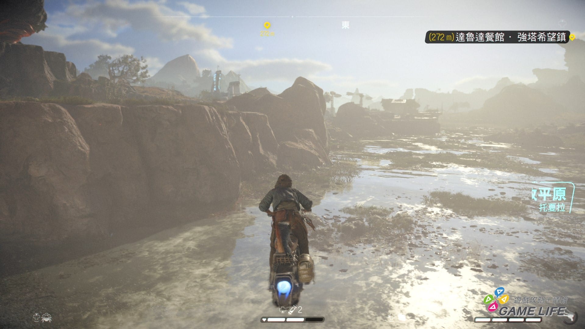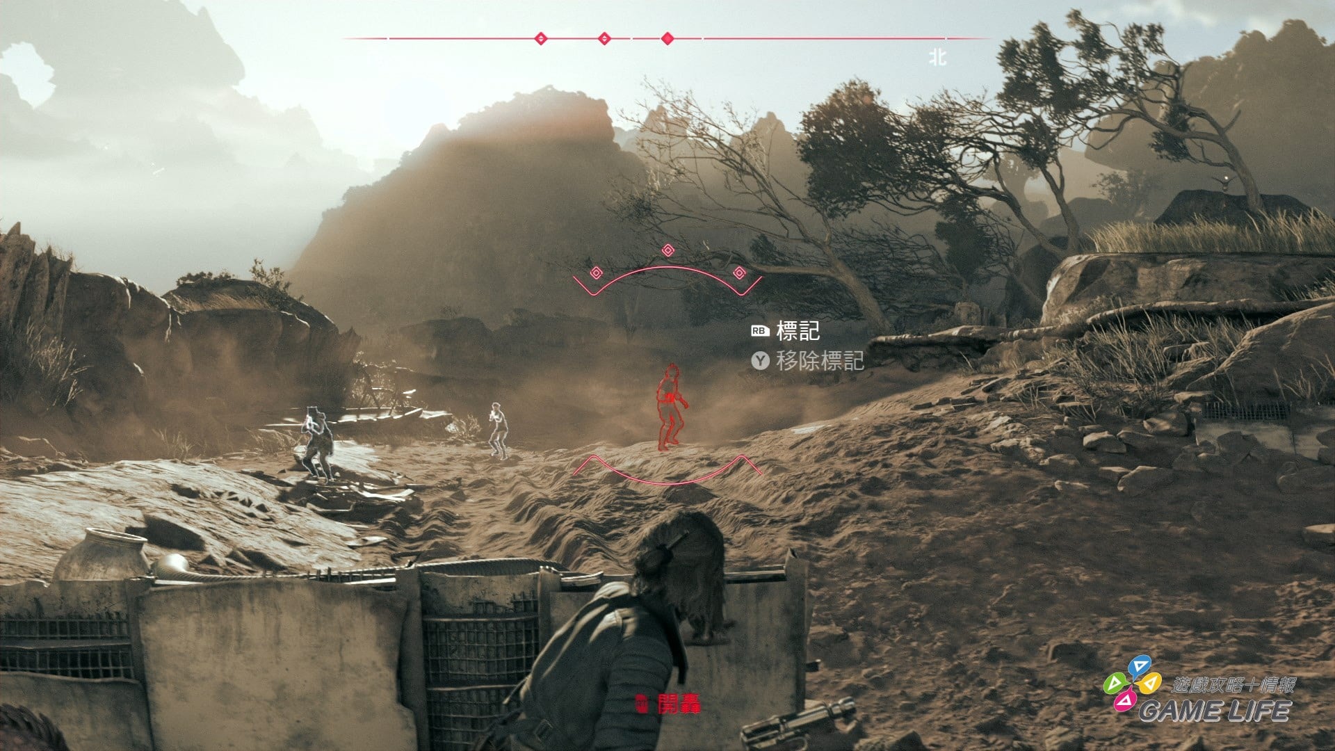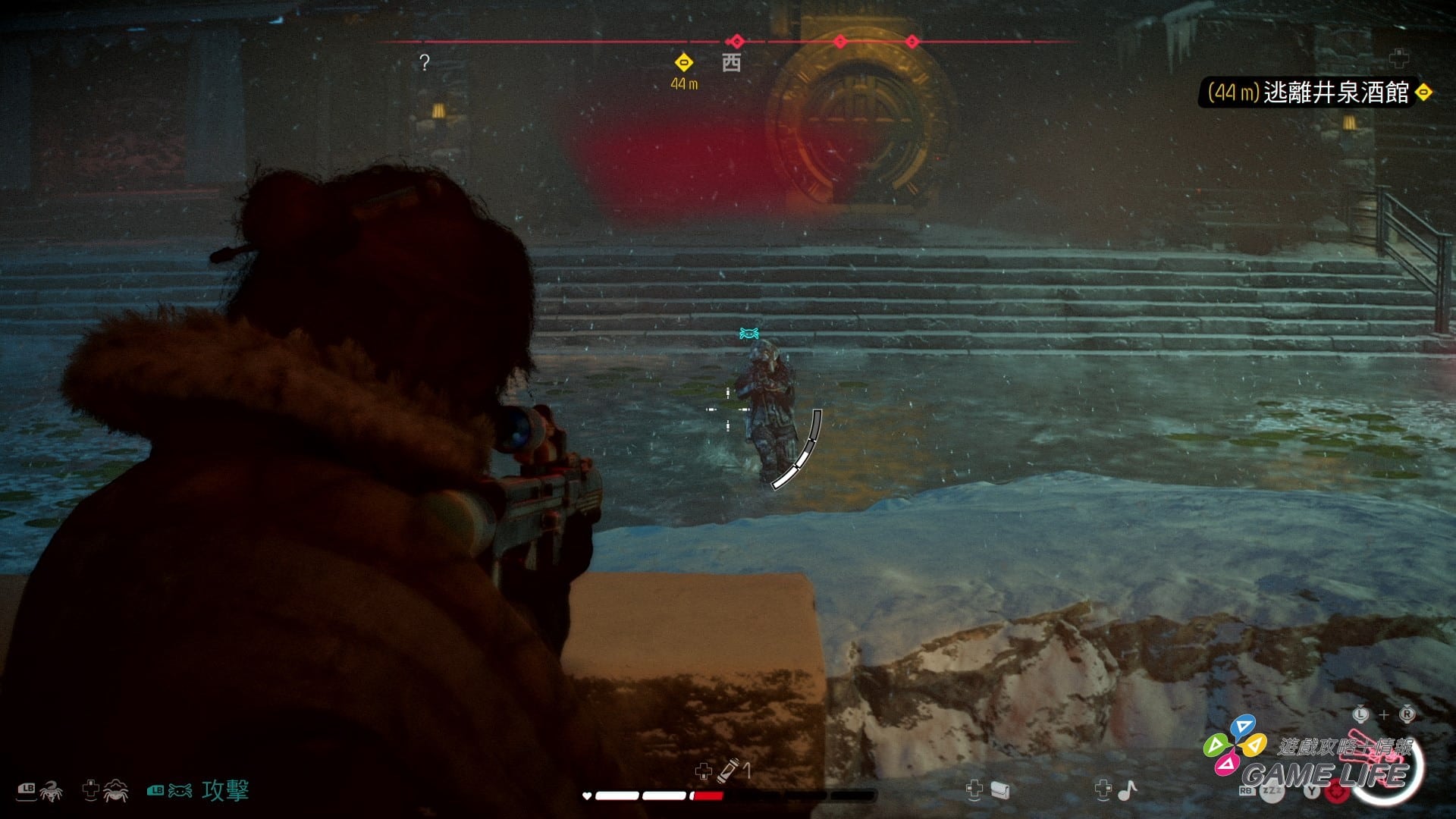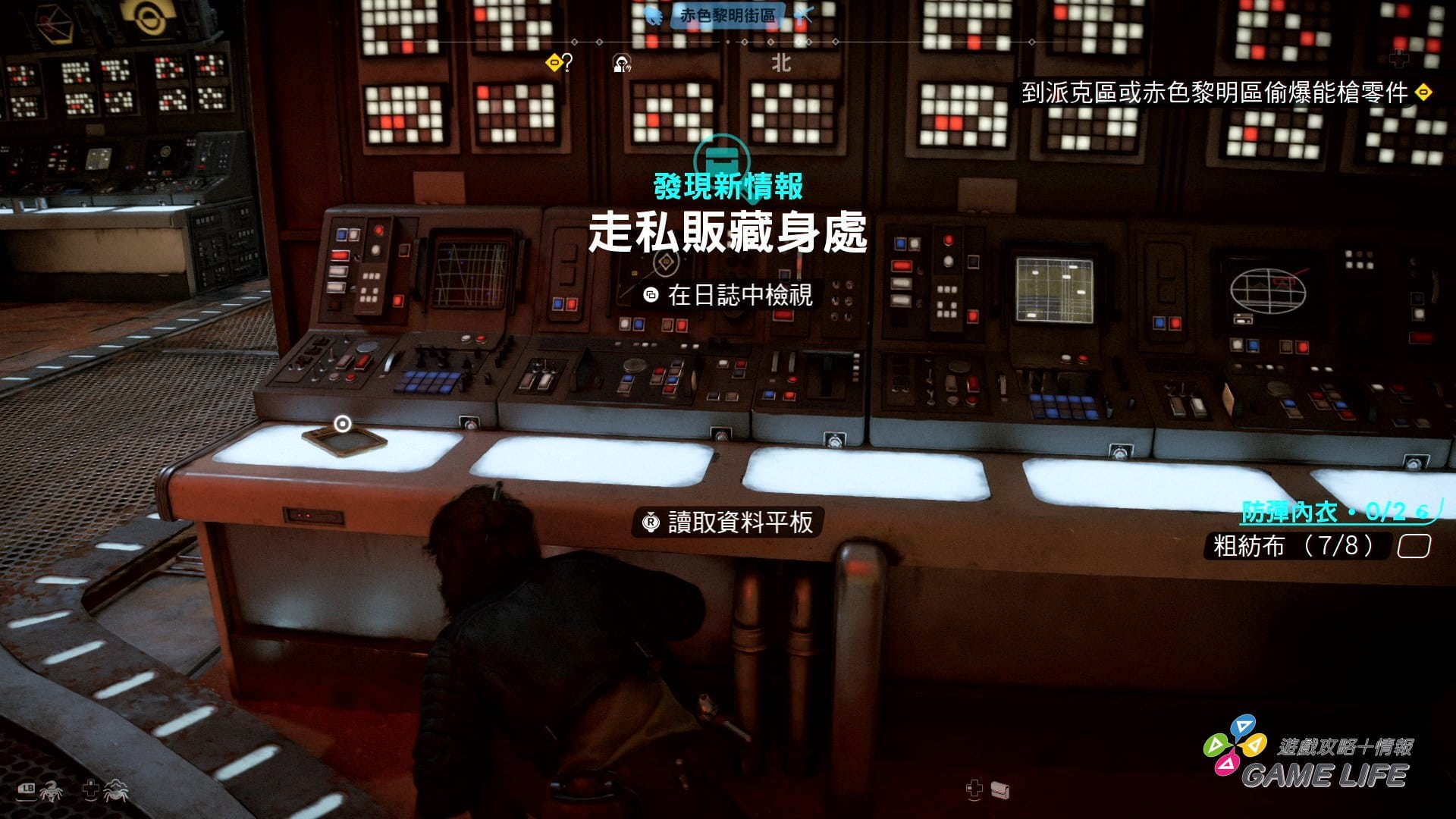 不過潛行任務多半有幾個問題要面對,第一就是路線的規劃跟尋找,本作雖然可以請小尼「掃描」周圍看看狀況,但頂多只能確認是否有巡邏者,可以互動的物件不容易看出,加上可以走的路線或通道標示並不是很明顯,哪裡可以鑽、哪裡可以用勾繩擺盪等等,在找路方面頗容易花上不少時間。倒是如果有小尼可以互動的物件,會蠻好發現的,玩家探索時也可以經常打開指揮小尼的指令找找看能請小尼幫什麼忙。