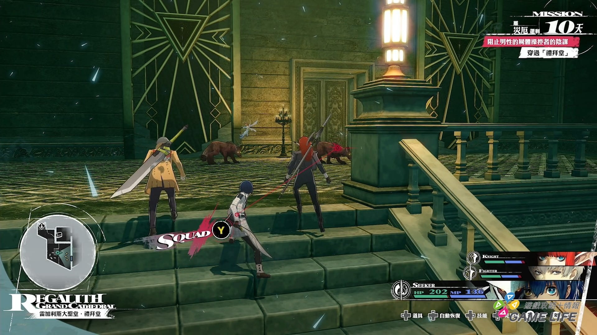 首先,本次試玩分為三個內容,每個內容都限定玩 15 分鐘,三個內容分別是遊戲序盤劇情、有完整隊伍的迷宮探索、高難度頭目戰,算是角色扮演的基本重點都可以掌握到。這次試玩要論最簡單的感想的話,應該就是與許多玩家所猜想的相似,本作可以看成一個在奇幻世界的《女神異聞錄》,接觸過《女神異聞錄》三到五的玩家應該很快就能熟悉基礎養成系統。