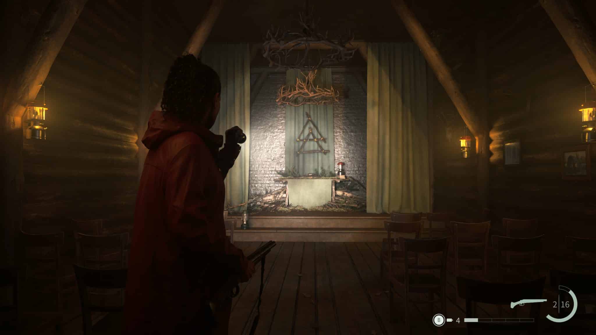 如果說初代《心靈殺手》是款有超自然要素的動作射擊遊戲,那麼續作就是款貨真價實的恐怖遊戲。電影鏡頭般的開場讓我們以「被害者」的視角切入整起案件。湖面上瀰漫不散的濃霧,樹林中一閃而過的目光。驚慌夾雜壓迫驅使我們在漆黑的林中狂奔。最終由血腥的開膛獻祭正式揭開遊戲的序幕。