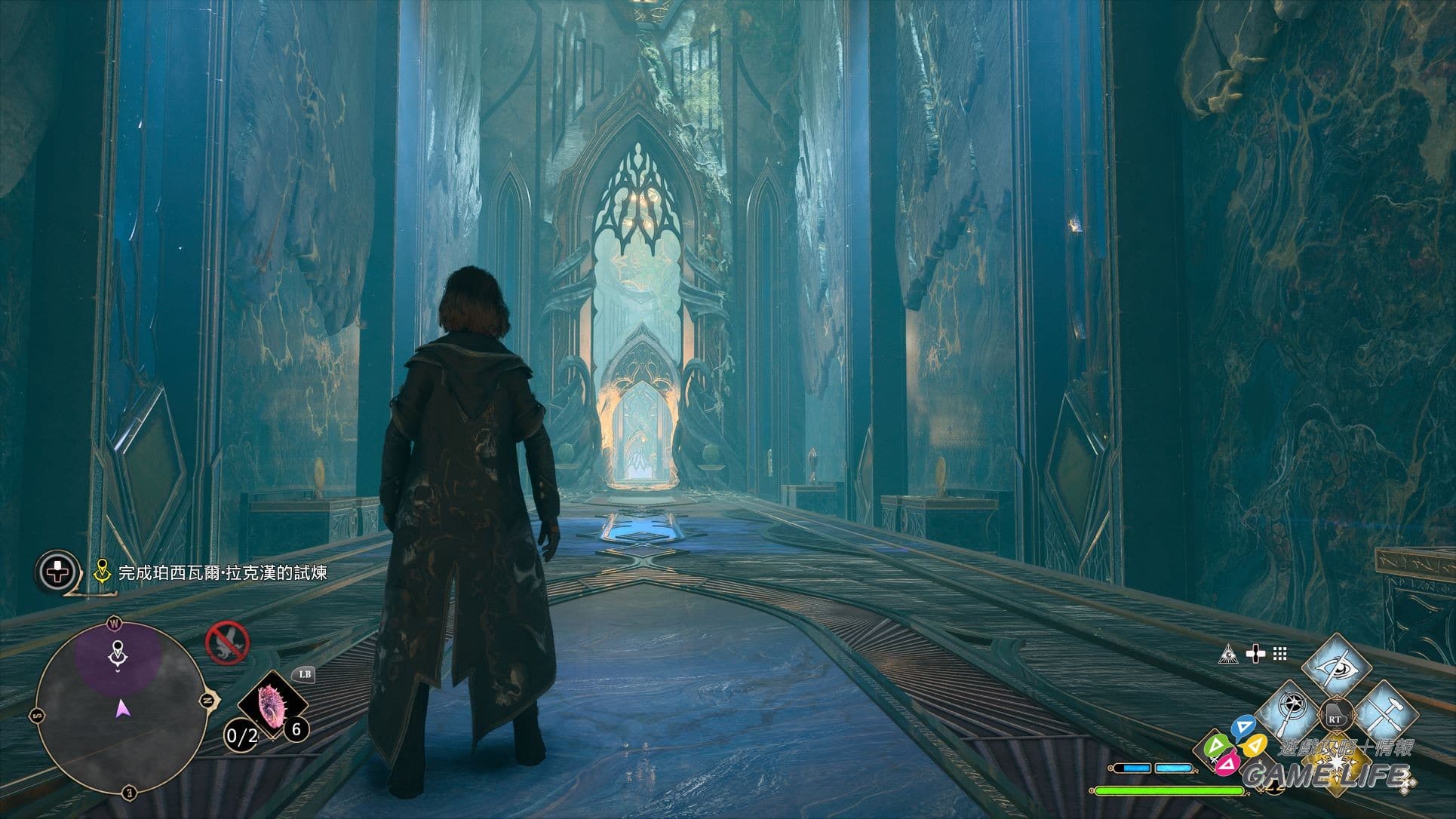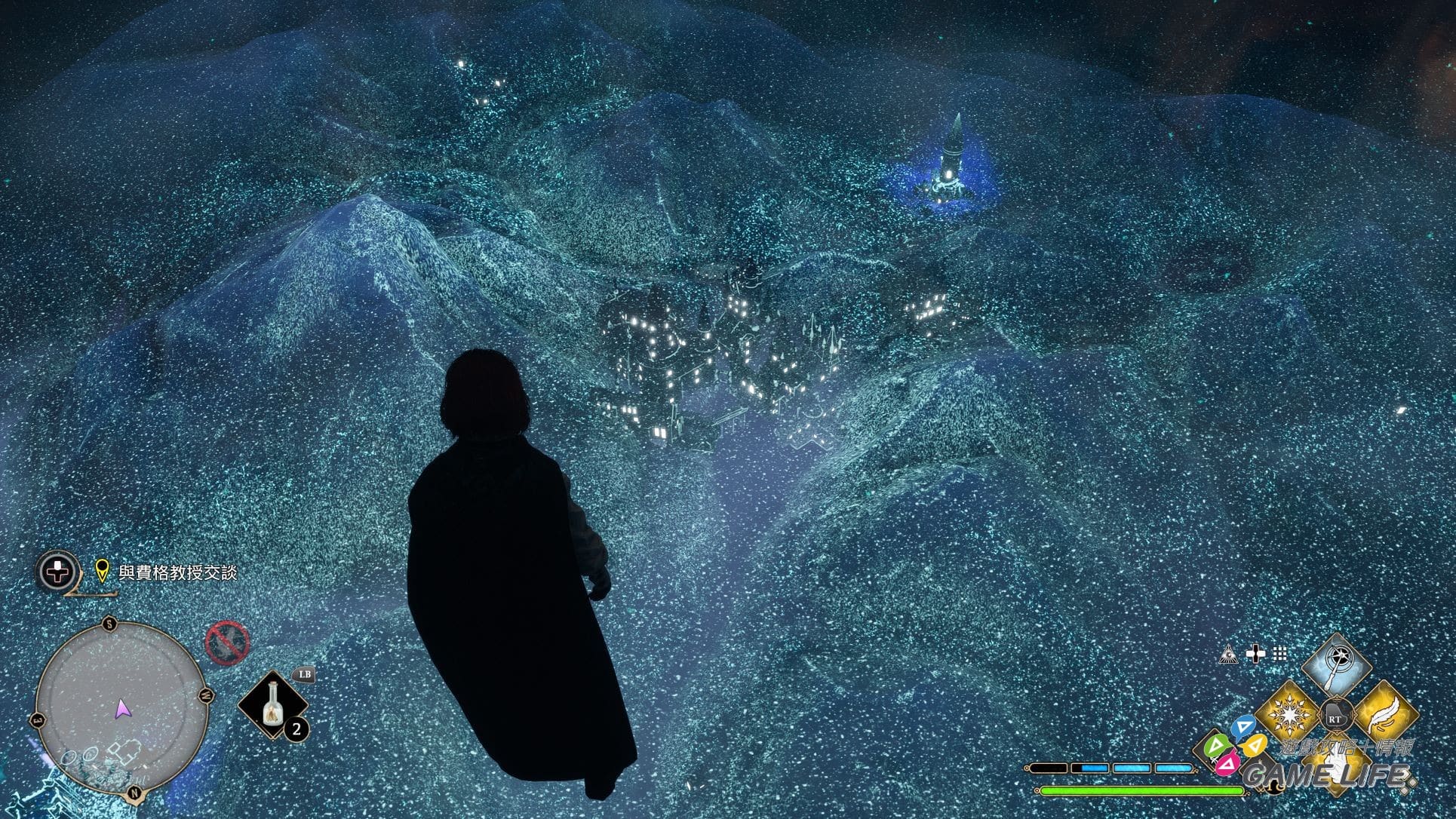 霍格華茲絕對是我探險過最複雜的迷宮,整體的設計有點類似《艾爾登法環》的主要地城,大是絕對的,另外的特色就是四通八達,很容易失去方向感,跟哈利剛入學的情況是一模一樣。學校內主要的功能就是上課學習魔法,還有不少寶箱跟蒐集要素。我最喜歡的一項是用路摸思找燈蛾,雖然是所有蒐集中最麻煩的一個,卻是最有尋寶感的一個。