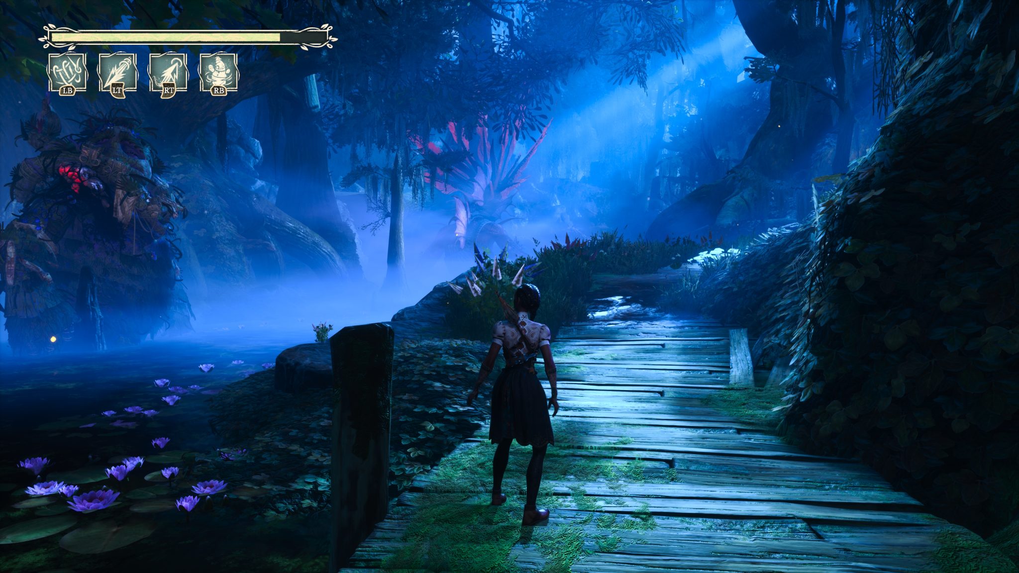 探索部分缺乏深度,流程線性,地圖場景雖然畫風吸睛,實際上互動點也僅作為背景補充。即使主角能以魔法飛簷走壁、射出鈎繩,這些能力也被過於保守地運用在特定段落,少了應有的自由度與策略性。關卡中的追逐戰也因為鏡頭缺少變化,顯得平平無奇,並不刺激。