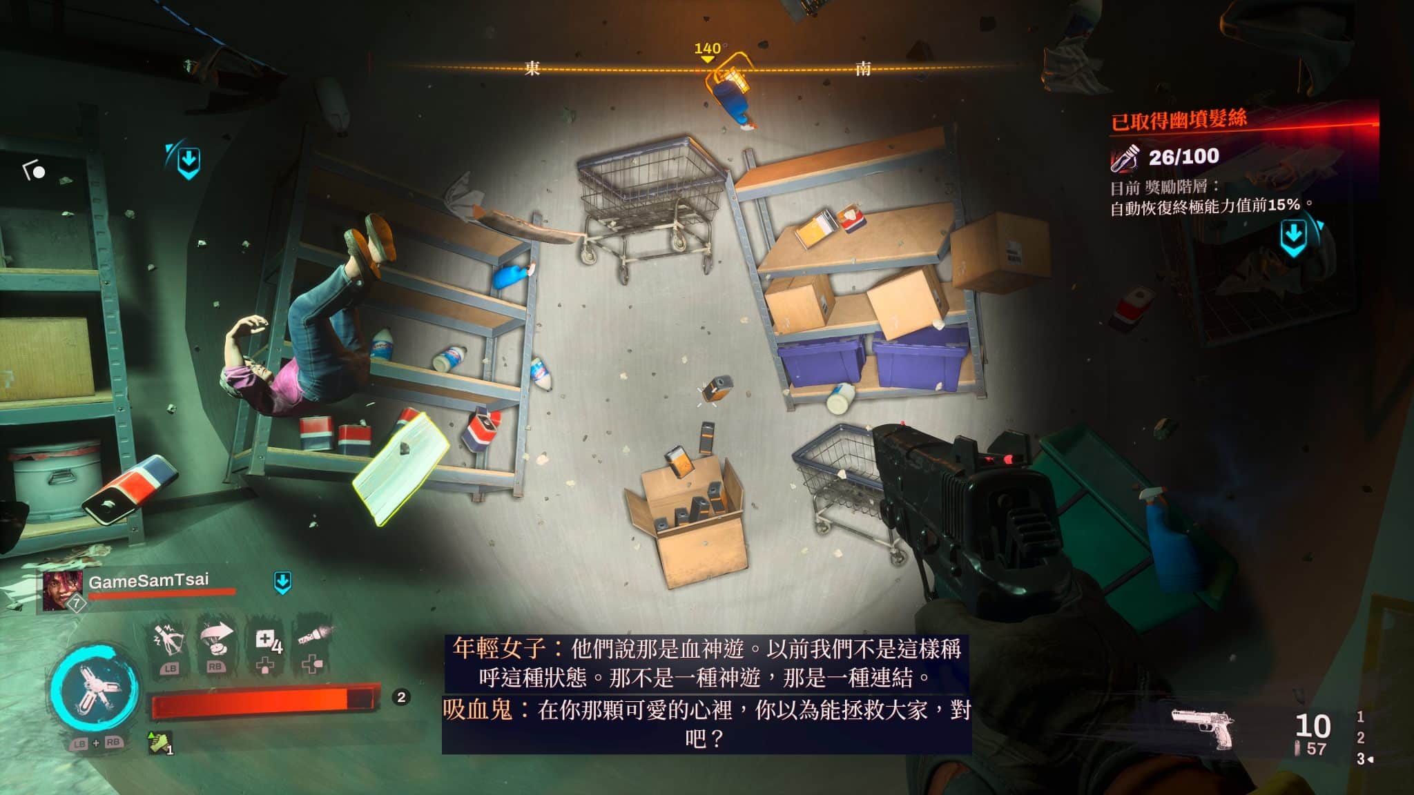 可其他角色就沒這麼好了。第二隻我玩萊拉,一位有超能力的女大學生。技能是防護罩跟升降機,大招能招喚吸血鬼戰鬥。防護罩只能擋角色正面,更糟的是不能擋近戰,大多數的吸血鬼都是近戰,防護罩多數時候根本派不上用場。電梯可以讓角色移動到高處,搶下制高點,但實用性與機動性遠低於德文迪的瞬間移動裝置。