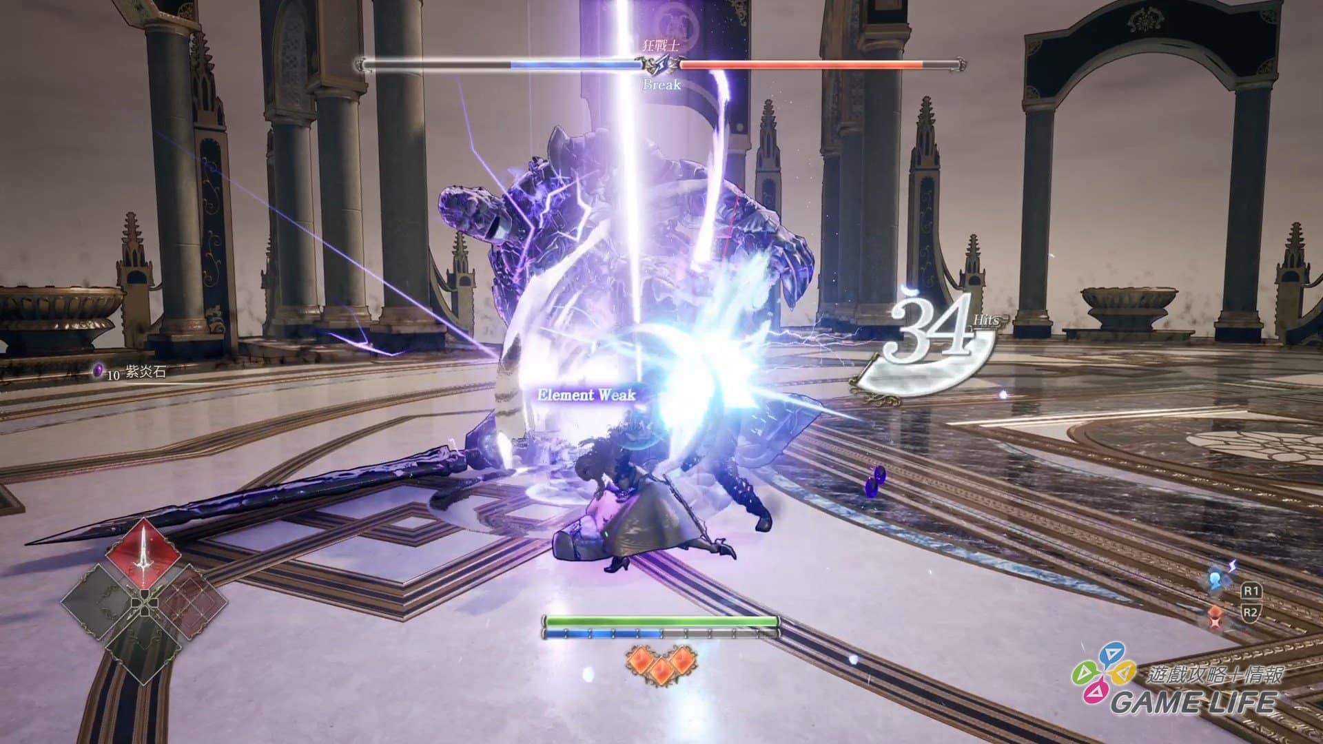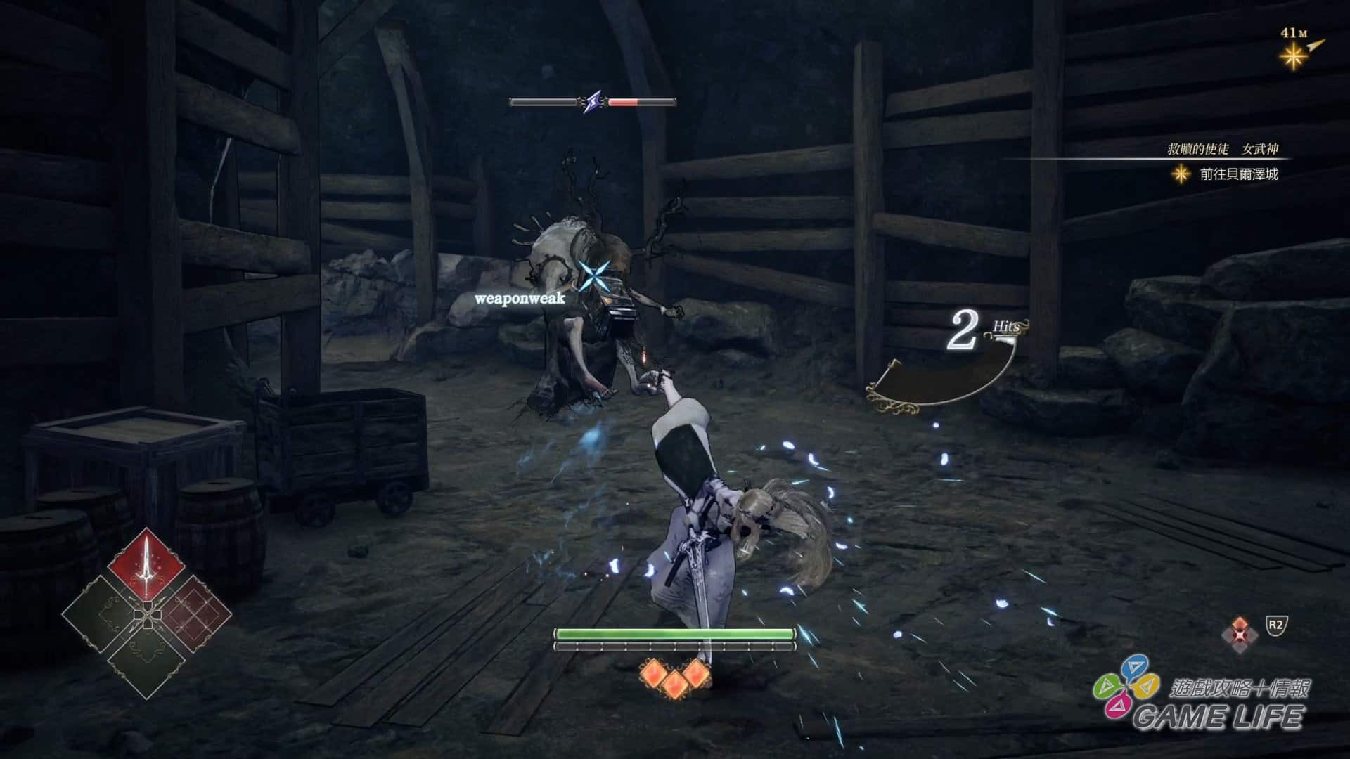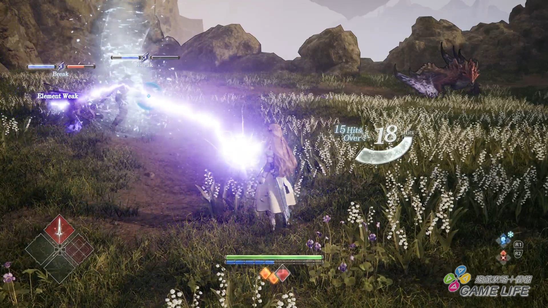 本作難度設計上雖不能說難,但也沒有溫柔到哪裡去。主要是多數敵人都不是可能正面作戰的強度,二來女武神的攻擊動作初期沒有取消概念,打得慢、破綻大,很容易給敵人逮到機會反擊。因此多數時候,得先用目標的弱點屬性攻擊破壞其平衡,再趁勢擊倒。