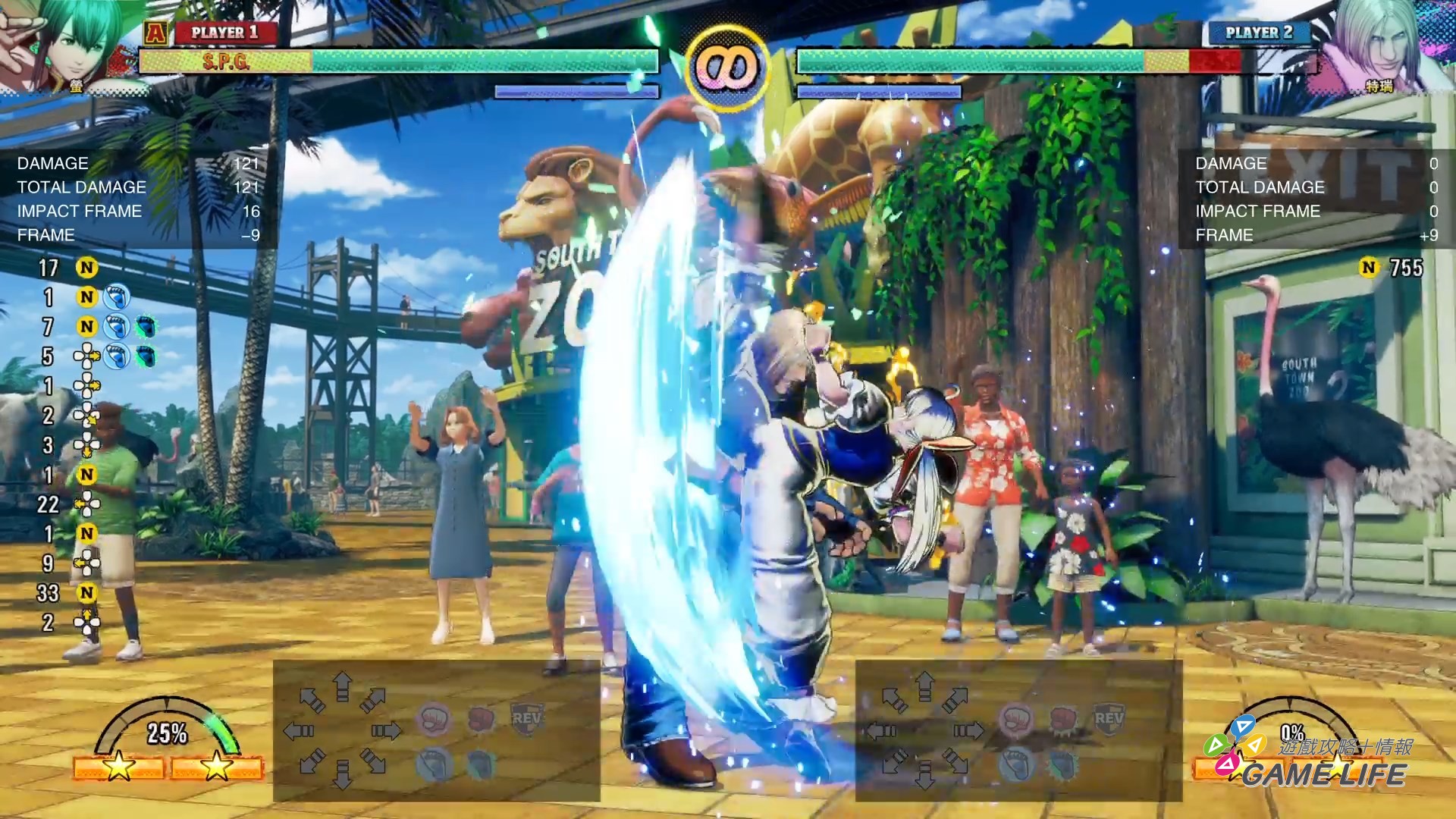 一般格鬥遊戲的連段概念,就是基礎拳腳取消指令技再取消超必殺技,但本作不同,強化版指令技取消接強化版指令技才是關鍵。簡單講就是如果玩家想指令技接指令技,例如 214 取消收手動作接 236,這兩招就一定必須使用強化版指令技,但也會因此累積 REV 計量表。這也能說是本作最重要的特色,格鬥遊戲上的資源控制,因為通常一波連段猛攻下來,REV 計量表都會累積不少,會變成是不是要進一步搶攻的判斷依據。