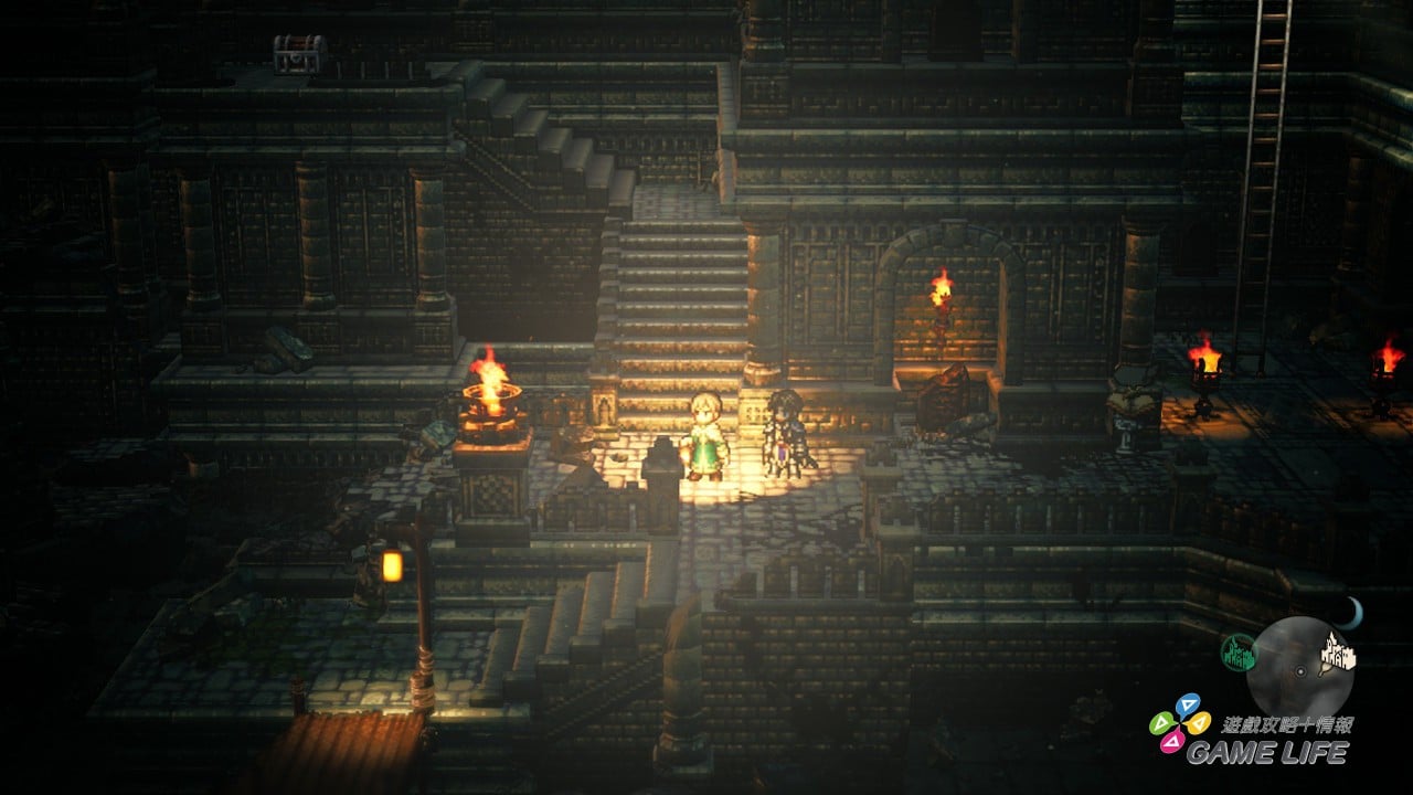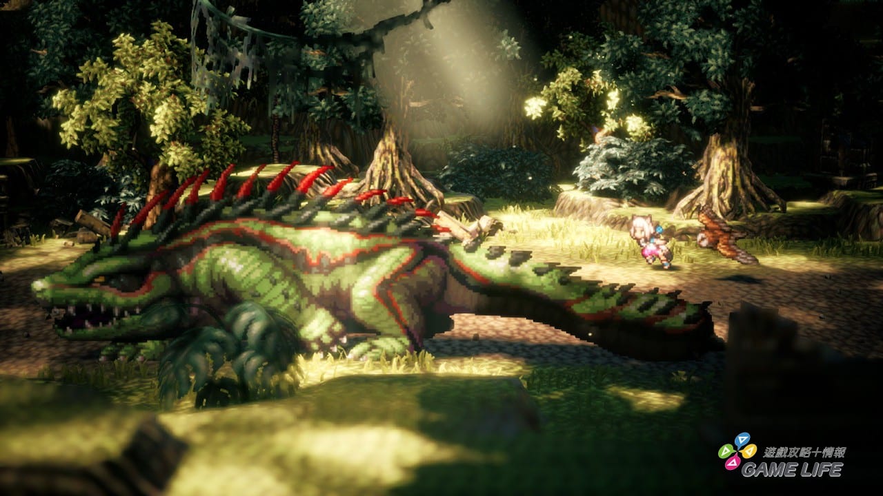不過既然有了晝夜變化,那勢必畫面表現就必須作出更多變化。《歧路旅人》一個大受好評的原因,就是 HD 2D 呈現的點陣圖美術風格,雖然看起來充滿古早味,但卻表現出細微的動作、前後的距離感、光影的漸層,讓老派風格的美術也能有現今的美感。