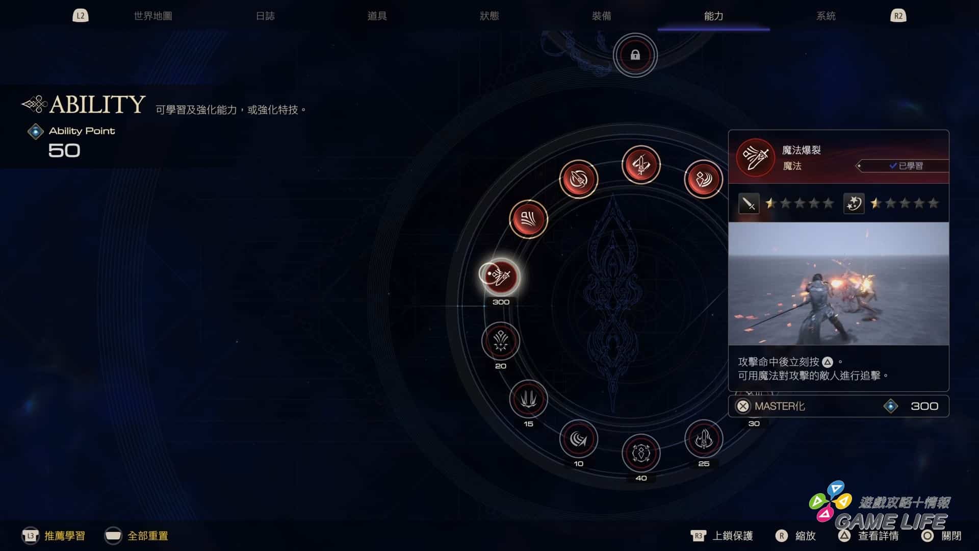 雖說是「像」關卡制動作遊戲,但還是要保留點作為角色扮演遊戲的特色。這遊戲還是有裝備、經驗值、等級、金錢、技能點數等強化要素。特別是技能點數,如果玩家想在這遊戲中打出一連串帥氣痛快的動作要素,那當然是需要非常多技能點數來學習新技能、強化舊技能。