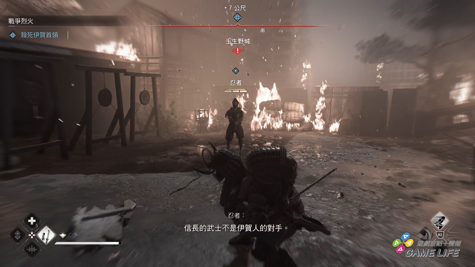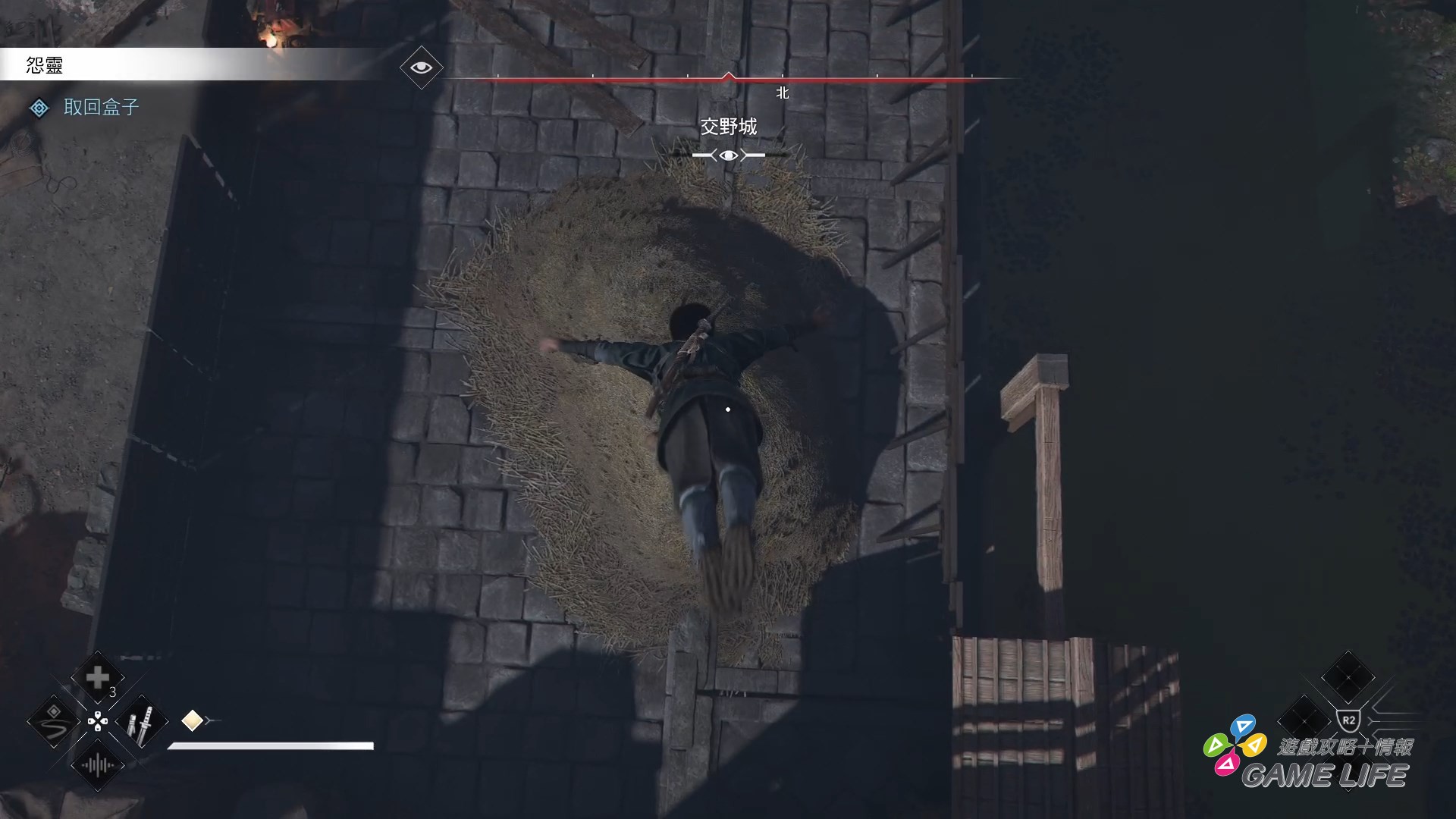 一個要注意的地方是當兩主角會合後,雖然多數時候可以自由切換操作角色,但一些區域跟關鍵戰場會要求選擇一名角色進行,除非離開該戰鬥區域才能換人。這部份要說是體驗兩主角性能差異跟遊戲方式也行,像奈緒江可能面對的敵人較少但多數時候都必須隱藏身影暗殺、彌助因為暗殺動作太大,不擅隱密所以就要正面作戰面對多數敵人。