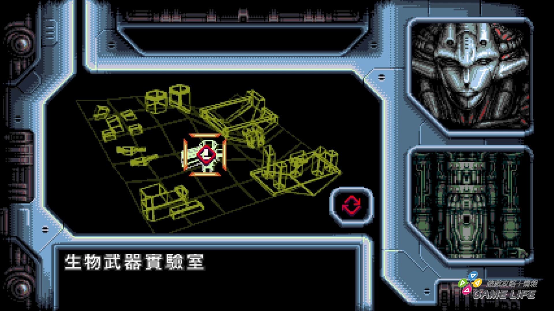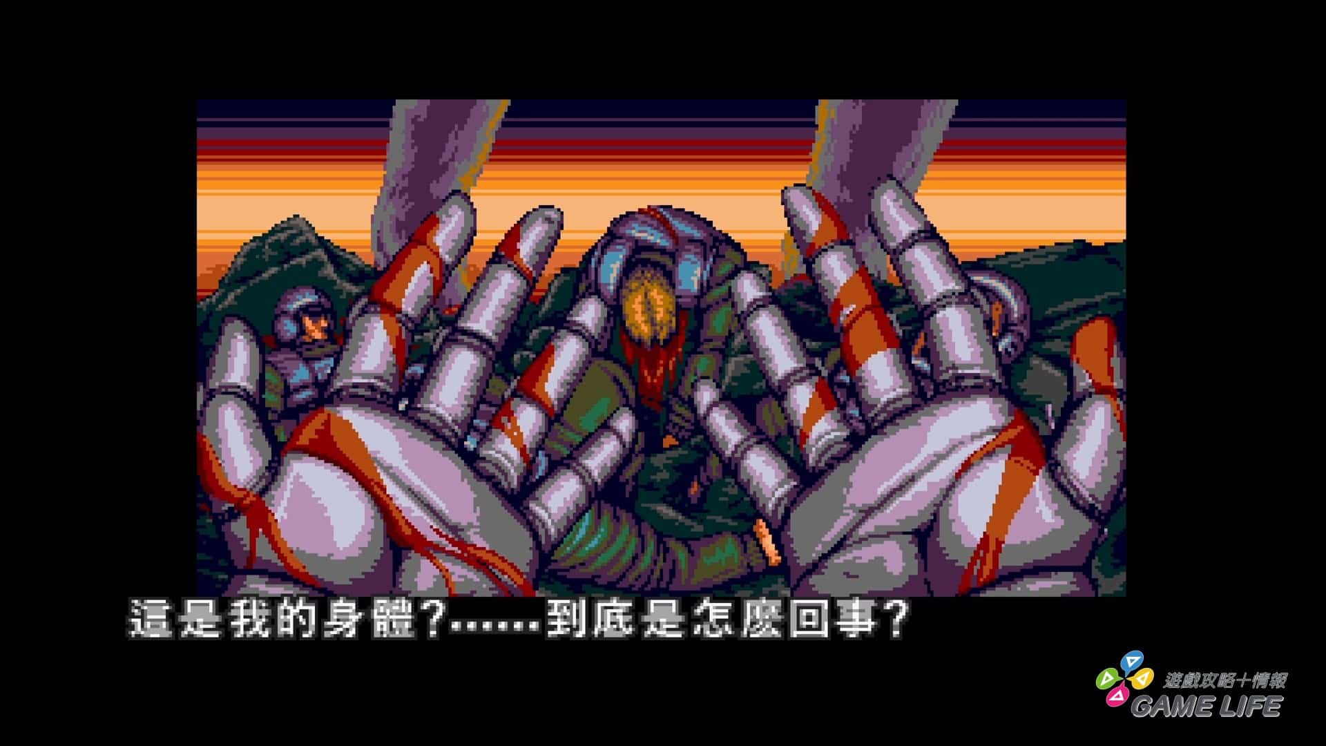 由於是參照過去的特攝片,所以不論畫面跟語音演出都有一定程度的驚悚,但也因為是點陣圖風格,沒有太直接的表現反而更能刺激玩家的想像力。其次雖然是 2D 畫面為主,但還是會設計宛如 3D 的遠近畫面,這部份大概就是開發團隊希望能盡可能地表現出過去遊戲能辦到的各種 2D 表現,讓玩家能有懷念的感覺。