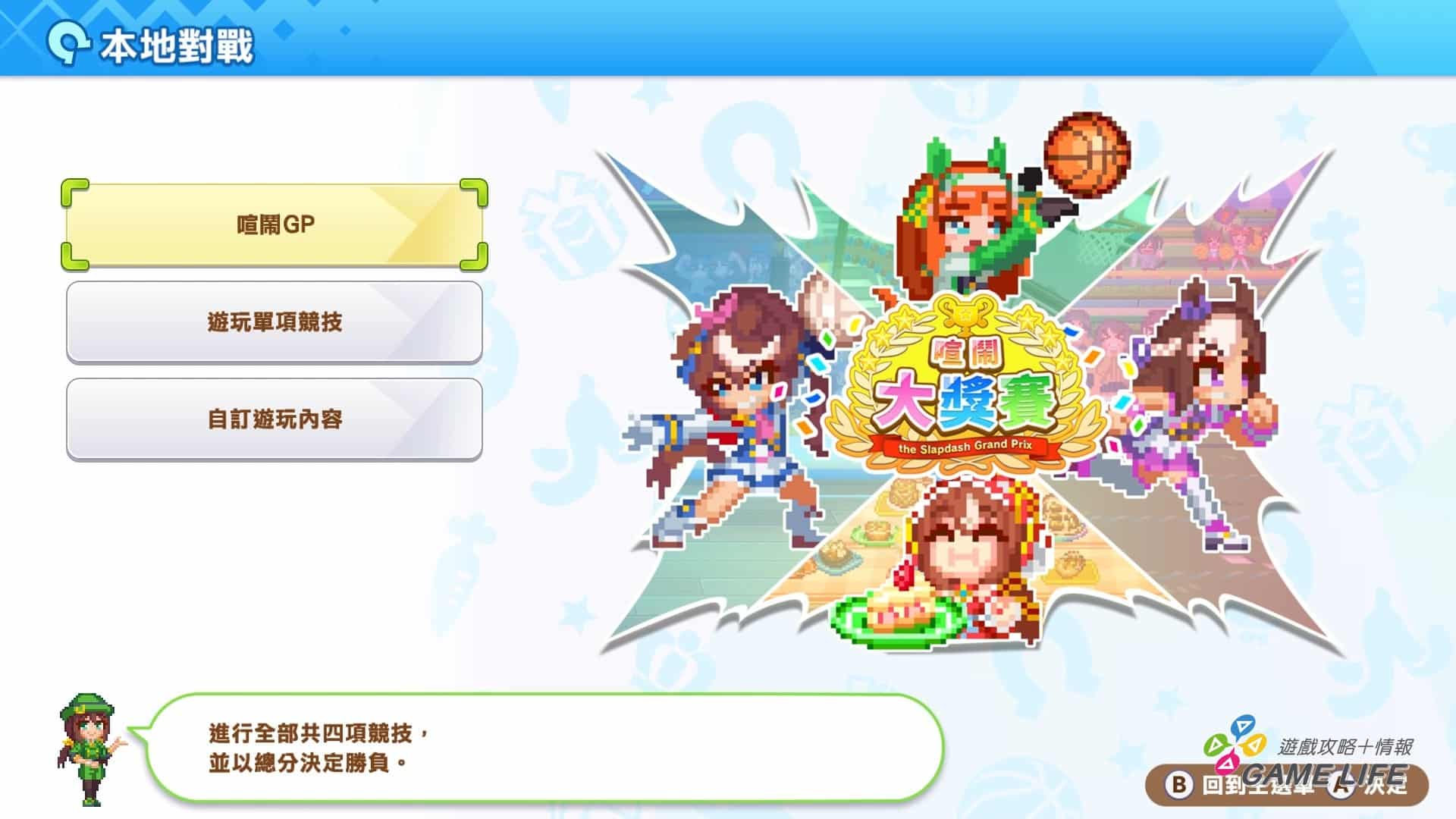 筆者用 Party Game 來定義本作的原因,主要也是因為本作的遊戲構成是以 4 + 1 種小遊戲為主,其中劇情上最主要的 4 種就是以運動項目為題材的 4 人競爭類遊戲。玩家可以透過線下或線上對戰來跟其他人競技一場大運動會,不論是挑選喜歡的項目或全都比一遍,都能隨喜好安排。