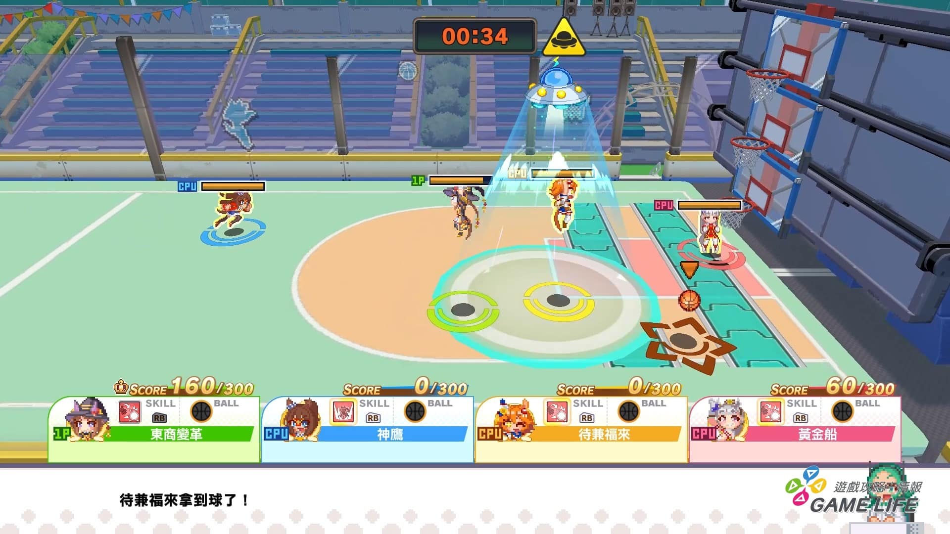 這項目有趣的地方是隨著進展,籃球場也會開始出現奇怪的機關,例如有得分數比較高的特殊球、妨礙玩家移動的地板跟 UFO、甚至是籃框變成複數可以挑戰一次大量得分等等,這種多變的機關,也能讓人有心理準備面對其他項目的「搞怪」。