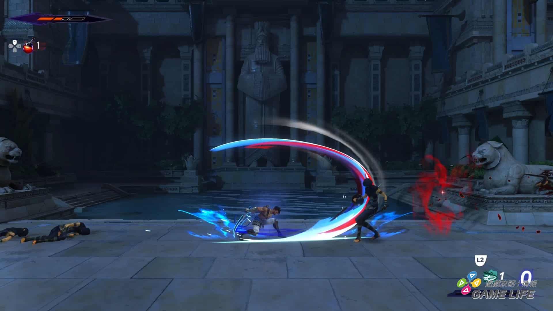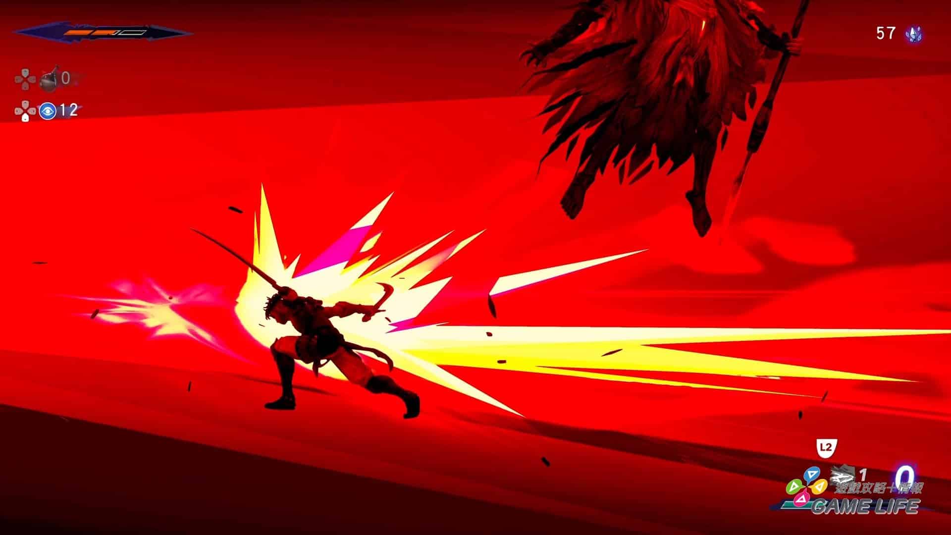 要注意的是敵人除了普通的攻擊,還有發出紅光跟金光的攻擊,紅光攻擊是絕對不能與其過招的強力攻擊,用盡辦法也要躲過;金光攻擊就可說是敵人的最強殺招,被擊中就是莫大傷害,但是如果架刀成功,就會強制進入一段動作演出,薩爾貢以特殊的動作給予敵人大傷害,這也能說是本作戰鬥面上一個非常必須熟練的要素。