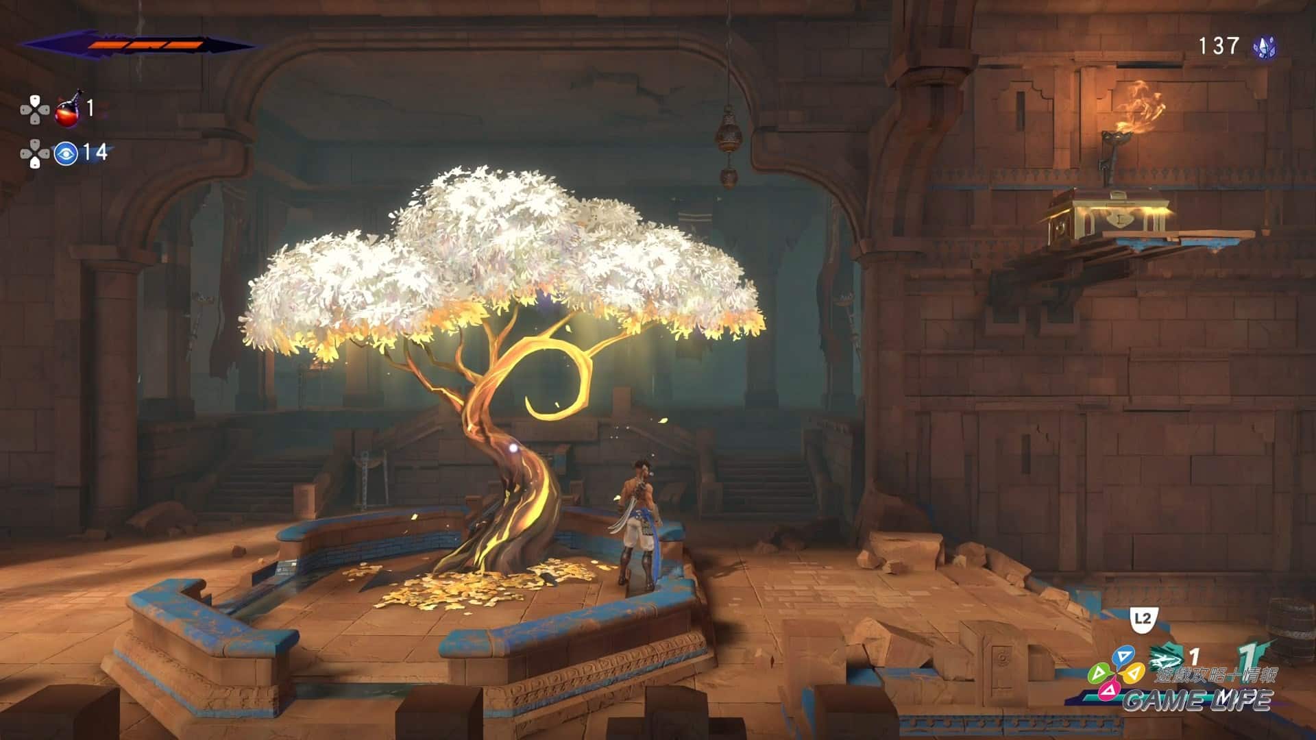 這其實還蠻難能可貴的,特別是在 Ubisoft 名下的《波斯王子》系列都以第三人稱動作為主,這回突然變回橫向捲軸,又是否能打造出豐富的內容呢?這點,Ubisoft 採用了非常單純的方式,不用早期的關卡制,而是採用類似「銀河惡魔城」的探索制,整個遊戲的大地圖就呈現在眼前,玩家能自由探索並依照自己手邊的能力跟道具,來自行推斷該怎麼走跟攻略順序。