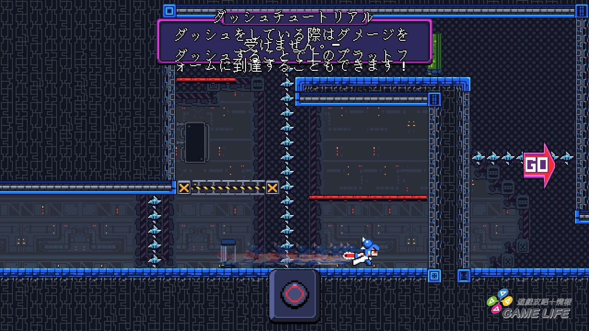 這遊戲的難度與其說是建立在敵人身上,倒不如是建立在關卡構造上。我方血量雖不算多,但打倒敵人都可以回復,稍微冒點險也無妨,甚至關卡頭目的行動模式也不算有威脅性。但也因為玩家角色光是上下左右八個方向衝刺都有無敵,關卡就敢設計了非常多種陷阱來限制玩家角色的行動。