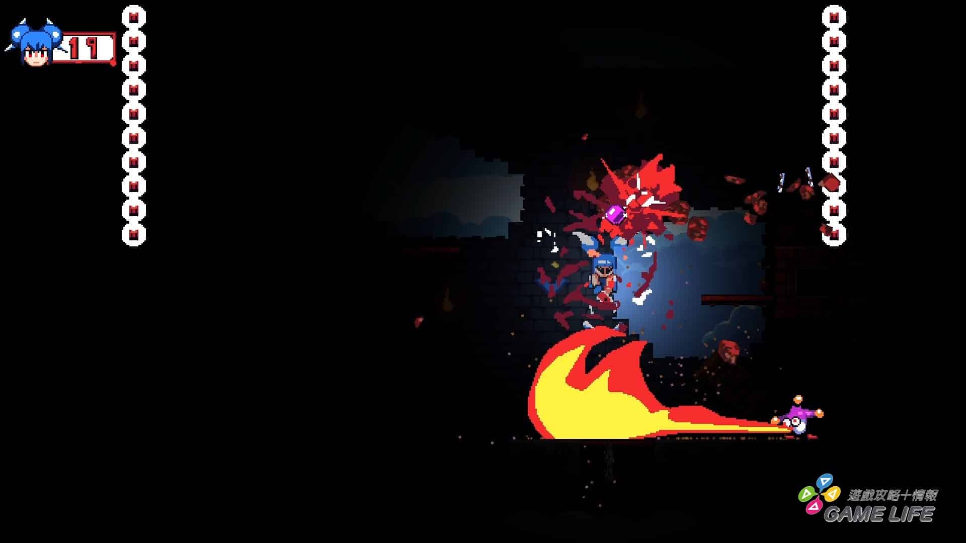 或許有人想說關卡的陷阱設計可以靠背多分來解決,但其實除了頭目所在的關門外,關卡中每一段的設計都是隨機構成,所以要用角色性能對症下藥也不容易,反而關卡構造的隨機變化就會一直考驗到玩家的 2D 操作技巧。但也因此,同樣的關卡反覆挑戰,也不容易感到膩。