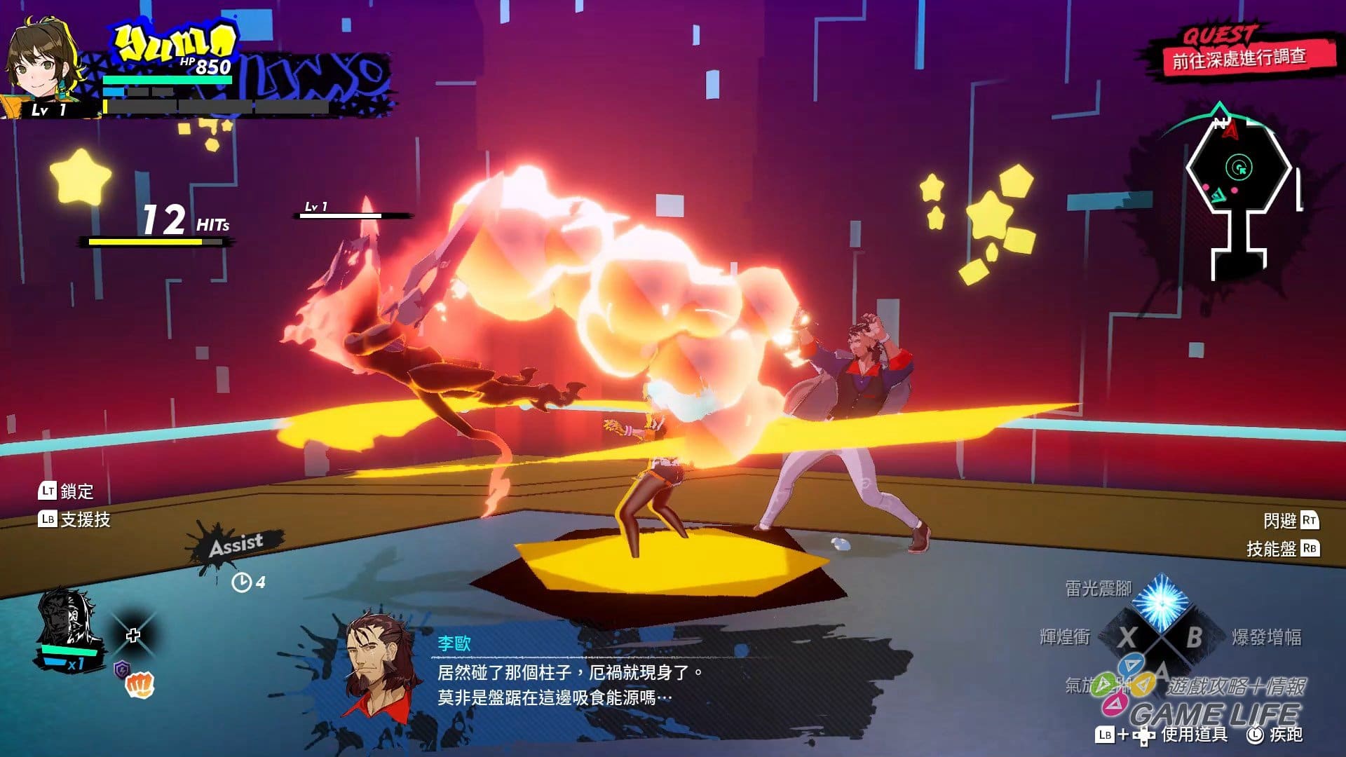 所以能看出遊戲的樂趣就是建立在一氣呵成的連段,話雖這麼說,本作還是有些需要加強的地方。首先本作的打擊節奏偏慢,普遍敵人的血量都設定太高了,就算玩家真的打出了很漂亮的連續攻擊,也不保證能打倒路邊的雜兵;其次不少角色的攻擊設計沒有考慮好是否能夠順利連段,例如李歐的弱攻擊會把目標擊飛,明明弱攻擊與強攻擊的組合是戰鬥重點,他的弱攻擊卻會跟重攻擊無法構成連段。
