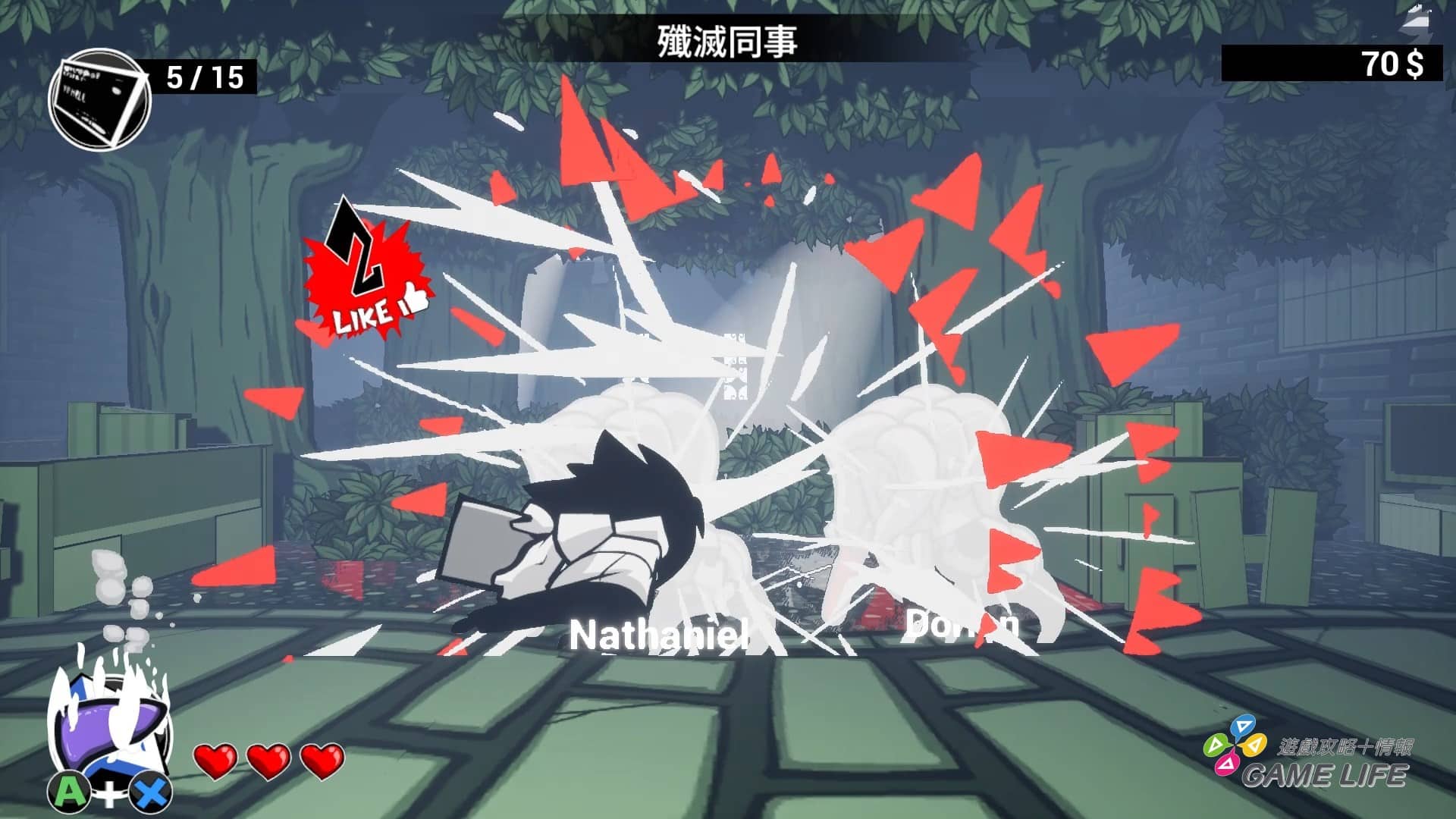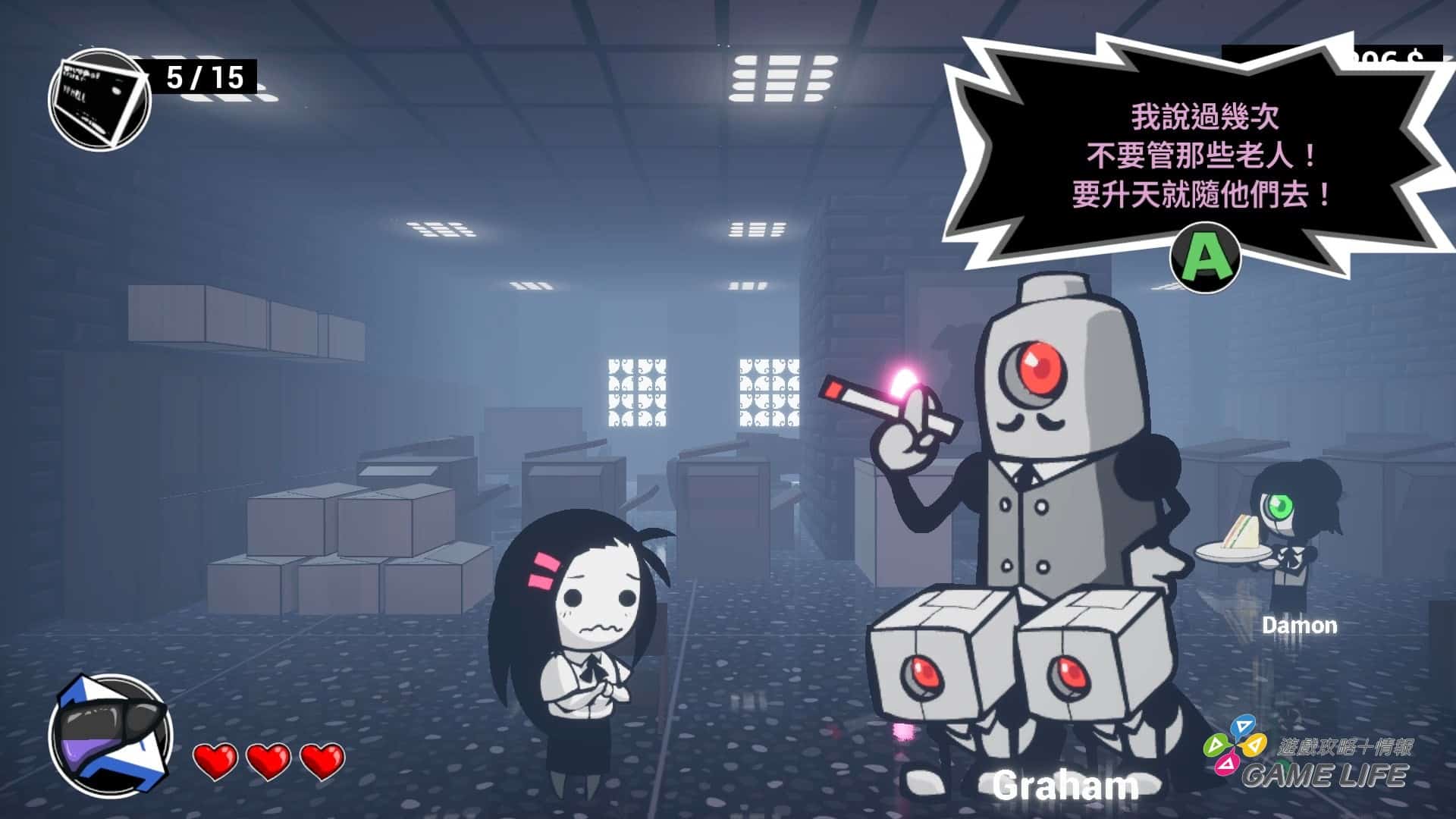 同時敵人基本上都是一群不會勞累的機器人,手撕機器人也不用擔心什麼倫理道德,搭配故事劇情簡短地以黑色幽默方式敘述著各種上班族在黑心公司上班的痛苦經驗,所以整體氣氛都是讓人想吐嘈的搞笑風格,不需要太擔心畫面表現過於血腥暴力,某種程度上,算是老少咸宜的。