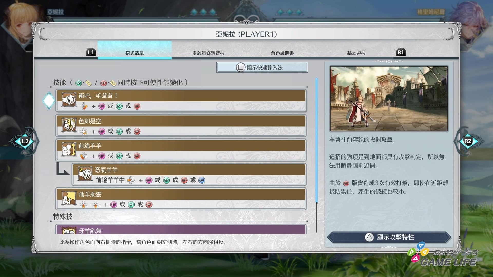 其次,本作還加入了一些簡單的解說,介紹各角色近中遠距離下,用什麼普通攻擊可以牽制對手、各角色也有方便的衝刺攻擊來活用,最後就是 Chain Combo 的概念,所有角色基本輕中重攻擊三連按都能構成連段,剩下就是去思考如何搭配指令技維持跟收尾,或者是如何對手在浮空跟在角落時進行追打,也因此,新手要研究、要背的項目就會減少很多,且本作盡可能排除太複雜的指令輸入,像 Djeeta 要輸入多個指令才能打完的超必殺技也變成一個指令到底了,新手可以投入實戰要做的準備就會變少,相對比較能體驗格鬥遊戲該有的樂趣。