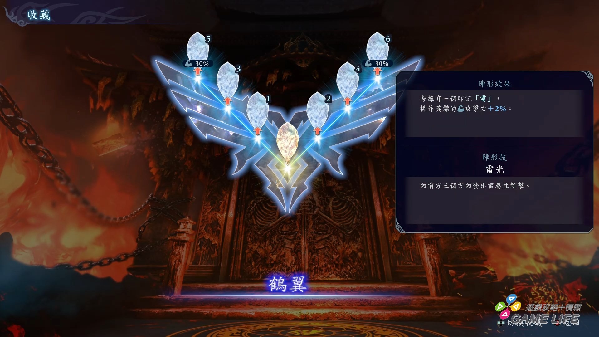 本作的組隊要素其實有點變化性,也能說是符合 Roguelite 要素,讓玩家每一次遊玩都可以選擇不同方向的強化目標。例如玩家招募的夥伴可以特別偏向某勢力或某屬性,進而產生組隊加成效果,例如湊齊蜀國五虎將,那麼召喚關羽的攻擊就會強化成五虎將一齊攻擊;遊戲又有所謂的陣型要素,一隊六人並選擇陣行配置,調整召喚攻擊出來的人物跟特定屬性的強化。