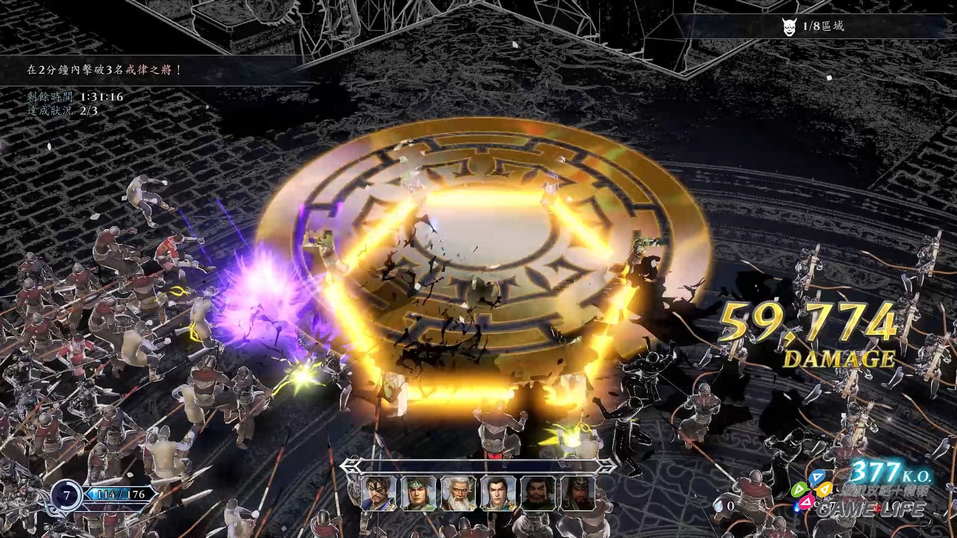不過也不是說就沒有缺點,像是視角變成俯瞰 45 度角,人物比例變小,跟以往《無雙》系列角度不同,剛也提到後期敵人數量人山人海,再加上各種特效,後期不少時候是真的會看不清自己角色位置。再來陣型也不是一開始就開放給玩家,玩家還要在迷宮中收集資源去迷宮中才有的商店才有機會買到新陣型,隨機要素有點過度導致玩家也不太能隨興規劃強化方向性。