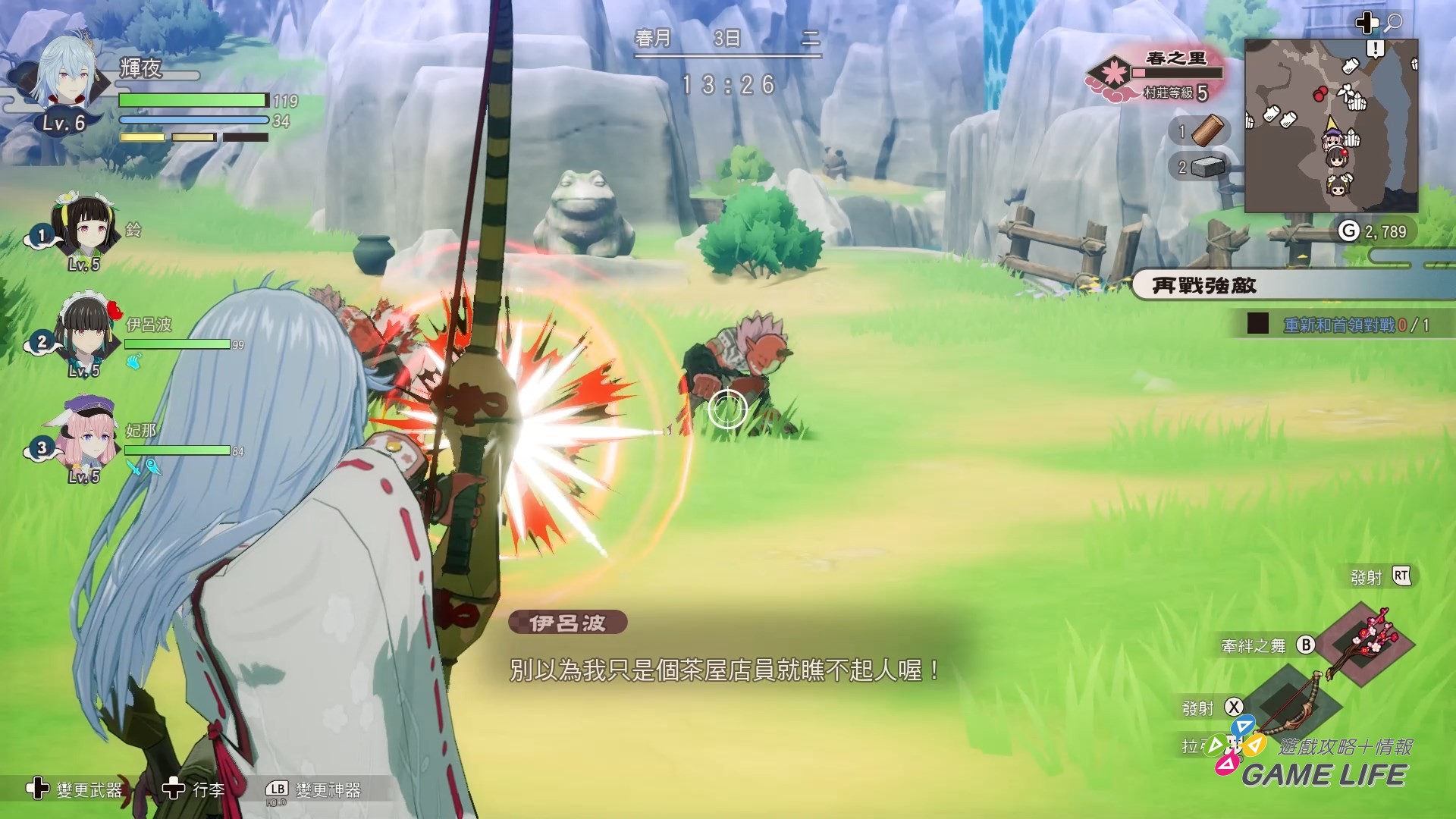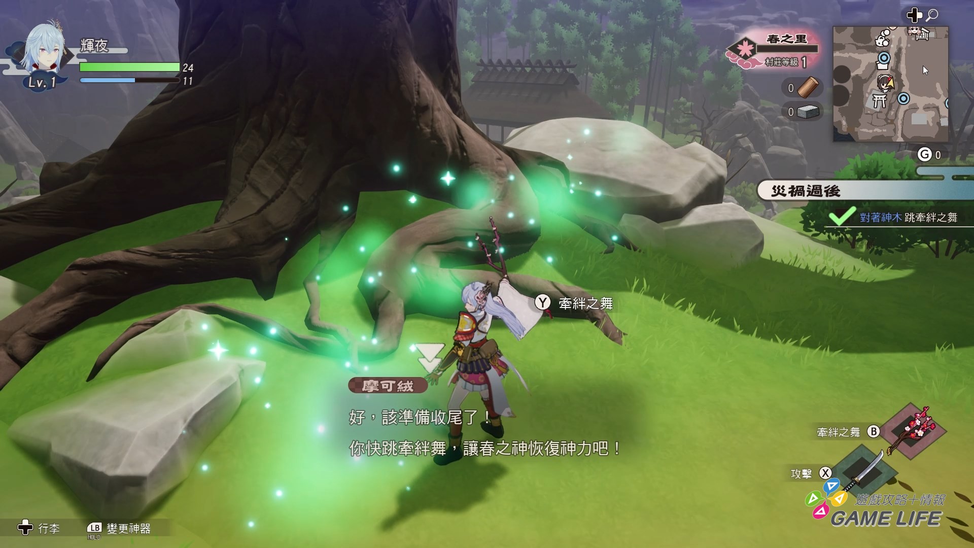 不只如此,舞這個要素關係到屬性跟農務的加速,對降低遊戲難度也有不小的幫助,最簡單好理解的就是屬性要素,本作強敵多半都會有屬性相剋的概念,雖然無視這點也多半有辦法戰勝,但針對敵人的弱點屬性,使用對應的舞,光是能讓強敵暫時無法行動,就能在頭目戰輕鬆很多。