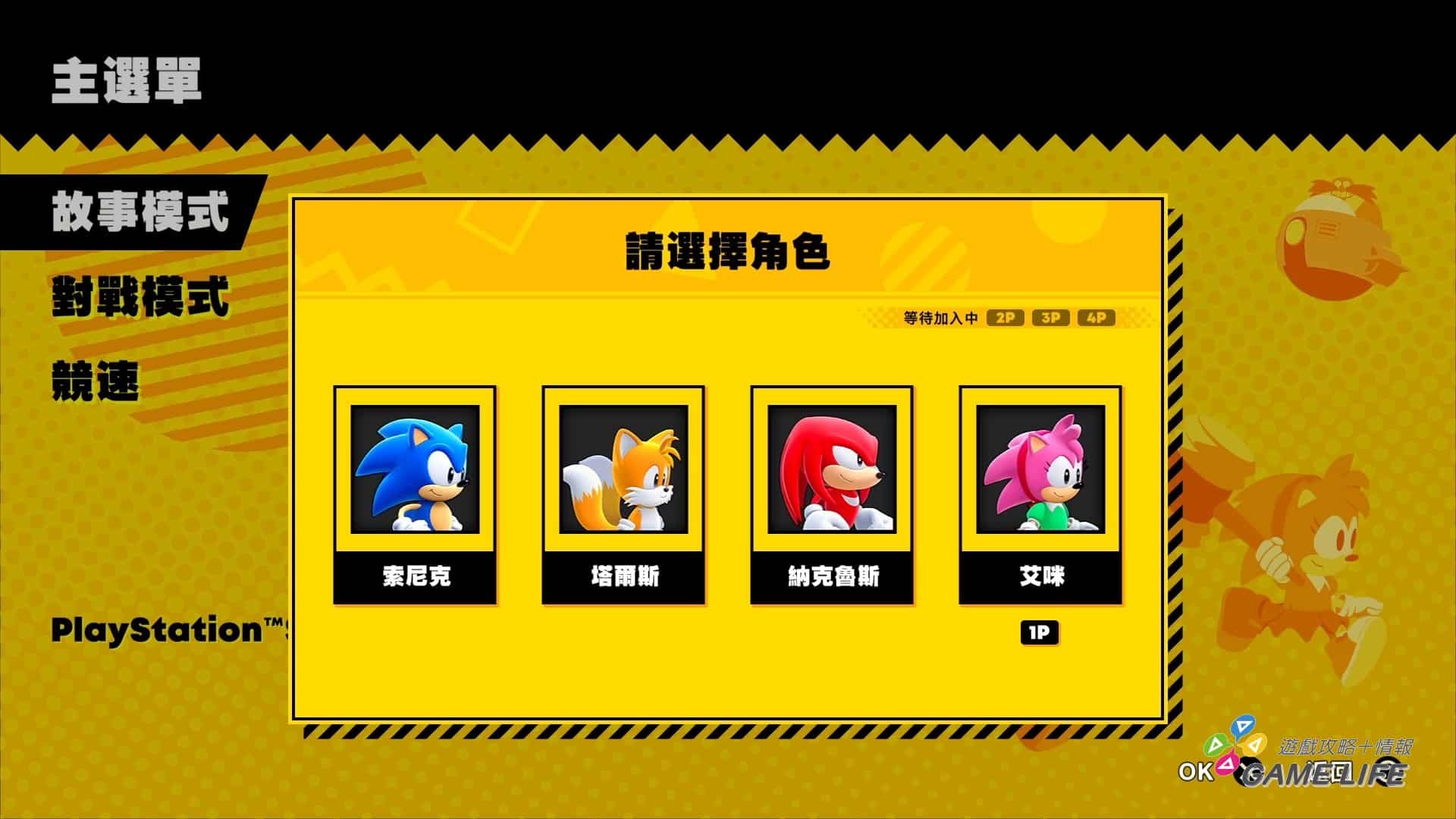 介紹完限定版內容,再來重點自然是遊戲本身,但過去有經過兩次試玩報導解說本作遊戲部份了,本篇心得這部份也就簡單敘述。本作的基本遊戲概念回歸到傳統的關卡制 2D 橫向捲軸,玩家從不同性能的角色中四選一來操作,於關卡中全力向前衝刺,避開敵人跟陷阱、觸動各種機關、收集代表血量的金環,目標是抵達關卡終點,打倒關卡頭目。