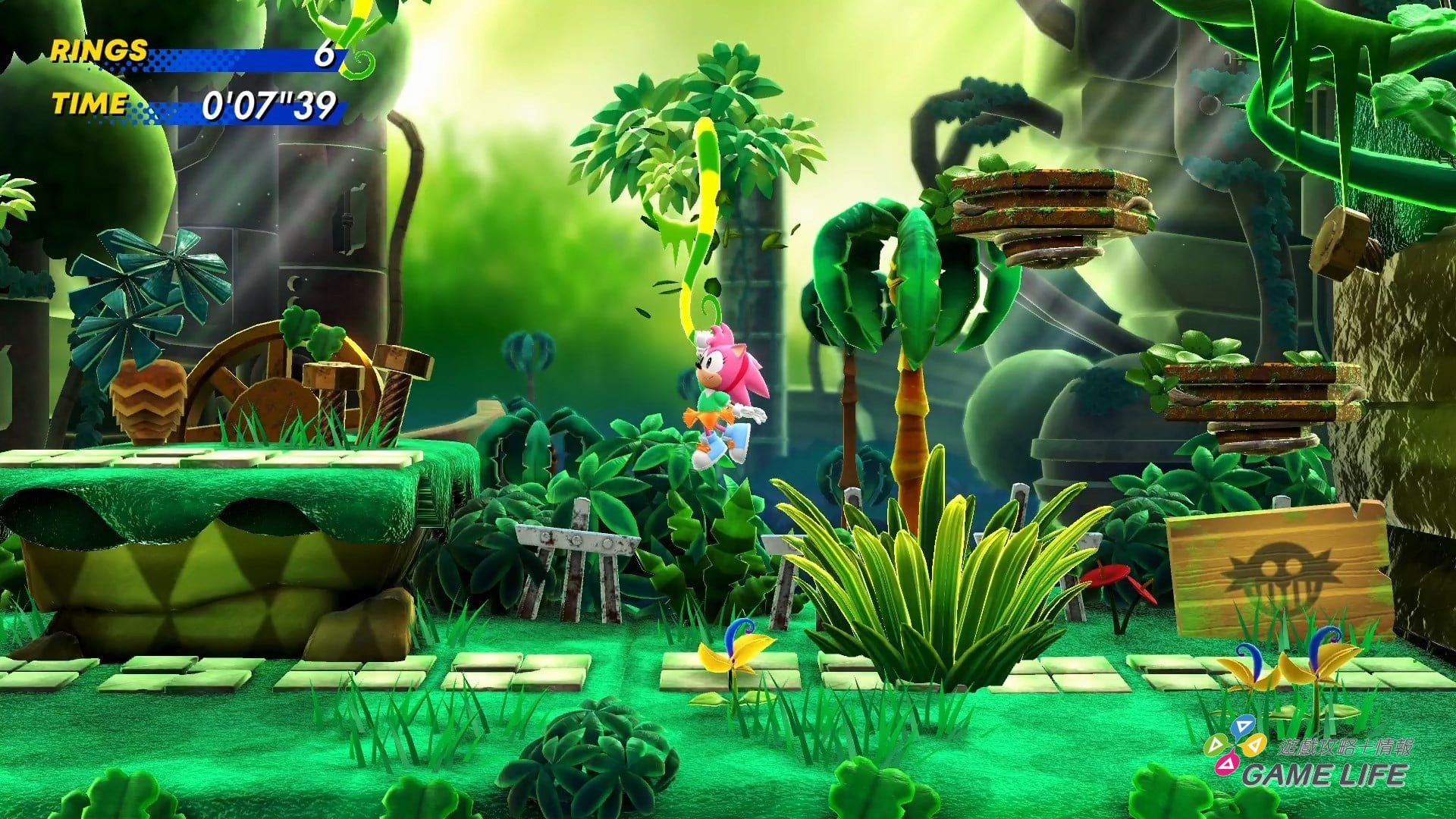 再來,剛也提到這遊戲因為大家都高速衝刺在闖關,《音速小子》系列特有的鮮豔用色與風景都是一閃即逝,要讓玩家在關卡中獲得樂趣,不能光靠視覺特效。最基本的就是靠高低差,利用很多跳台或加速裝置讓玩家可以左右縱橫都四處滾動。
