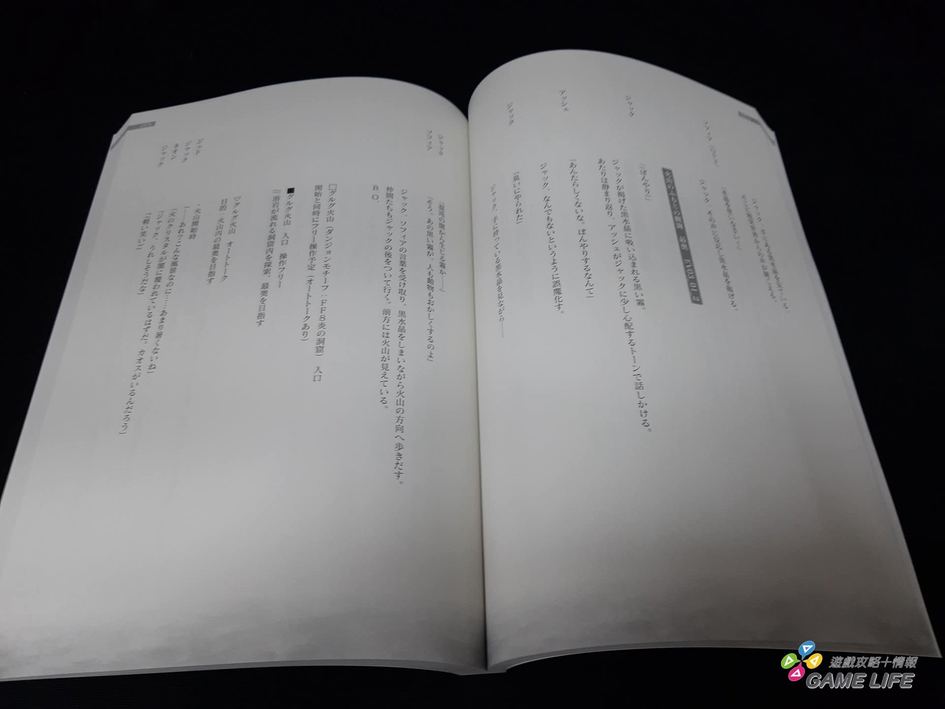 拿起上述兩者後,就會見到兩本書。第一本簡單講就是本遊戲的劇本,裡面記載這遊戲所有的台詞跟演出方式,也就是說,是充滿「劇情洩漏」的內容,雖然都是用日文並沒有中文化,但筆者還是建議,最好要全破遊戲一次再來看,免得一些重要劇情太早知道,喪失了驚喜。