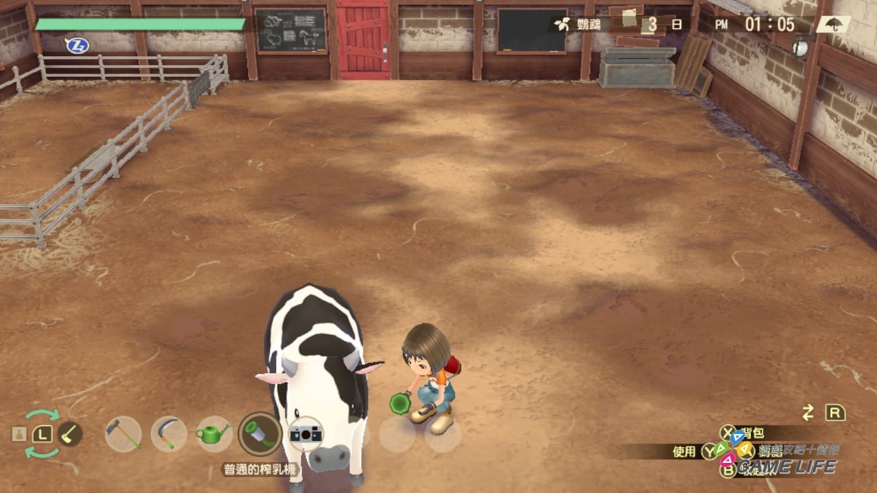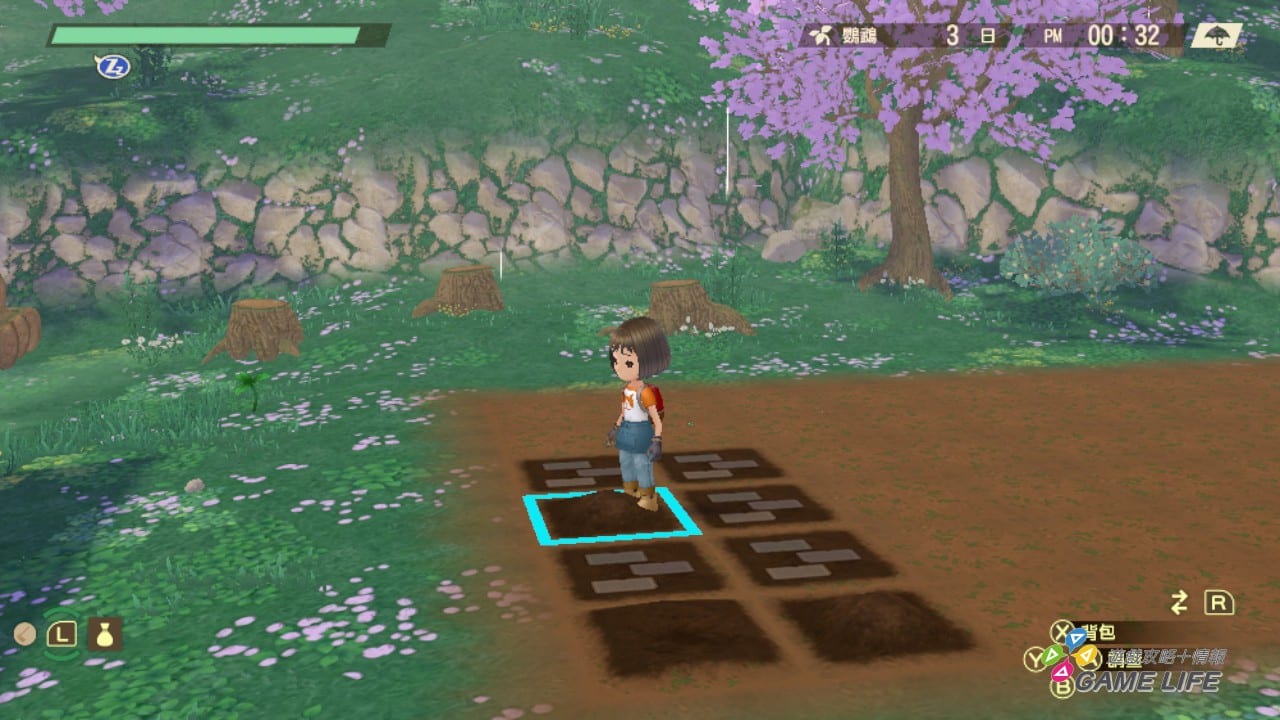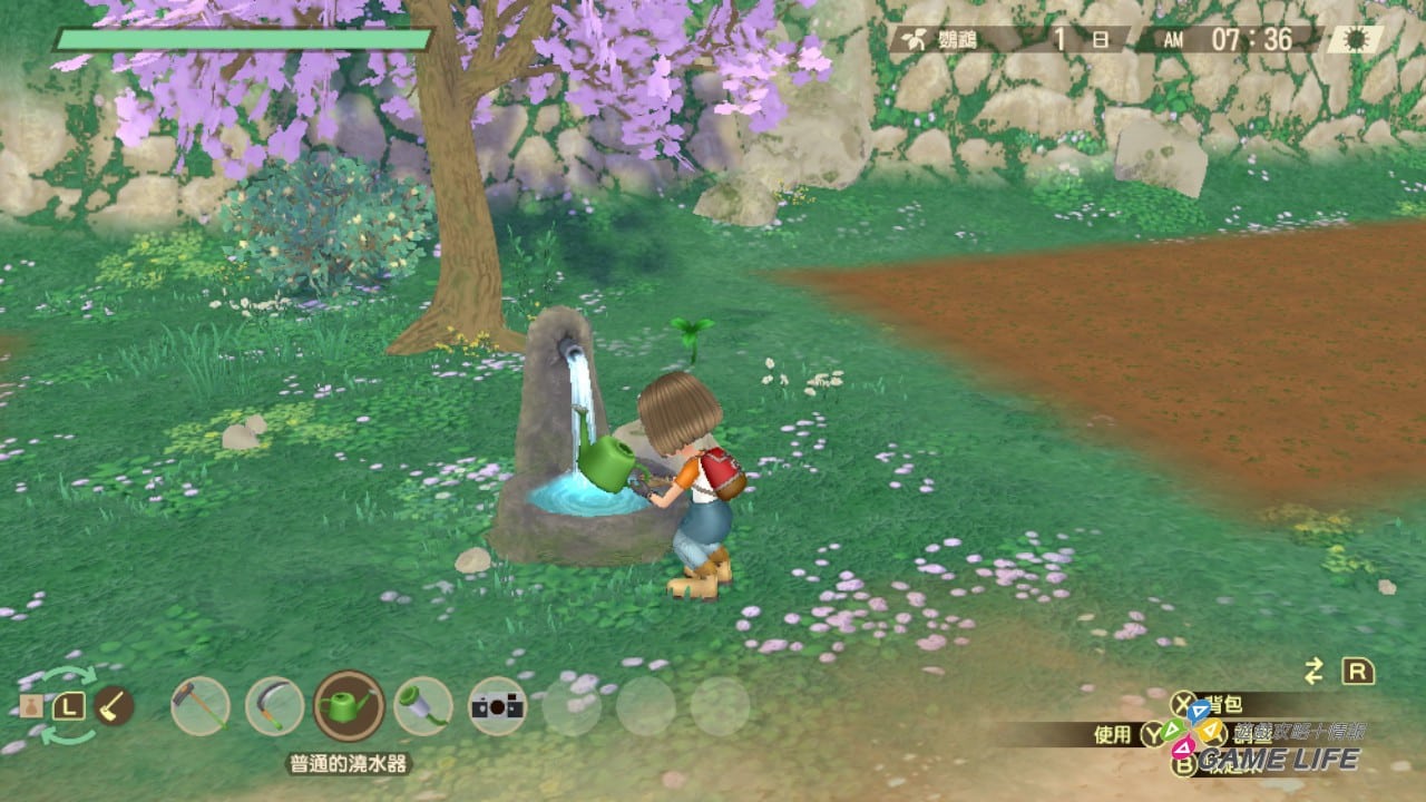 如果有玩過其他《牧場物語》系列,那在一開始耕田時應該就能感受到本重製版改良的操作性。以前系列在操作性上在現今來看有點繁瑣,耕田灑種子要一格格慢慢移動、挑選道具也要開選單先挑選項目在去切換,不方便又煩躁。這次光是耕田,系統就設定會自動幫玩家鎖定「沒動過」的格子,光是這個操作就省去非常多的功夫了。