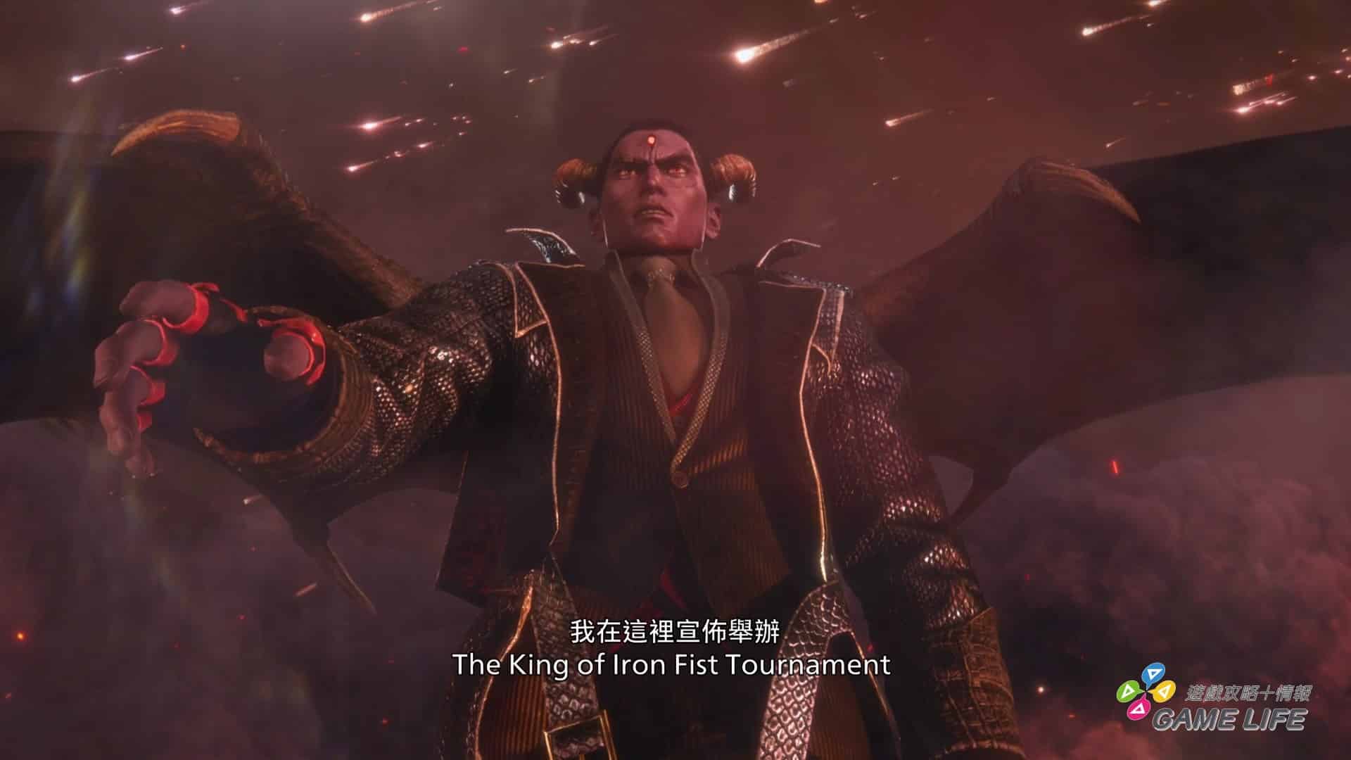 試玩提供的故事因為無法觸及全貌,所以也無法揭曉什麼謎底。可以確定的有,故事模式幾乎以操作「風間仁」為主,透過他的視點,從與「三島一八」的死鬥開始,到他暫時失去惡魔力量,到新一屆鐵拳大賽的開始,之後本作新角也是神祕女子「麗奈」登場。從故事走向來看,初期會以風間仁重新審視自己的惡魔之力為中心發展,至於新角色的麗奈打什麼鬼主意就不明了,但表現上確實是個不定時炸彈要素。