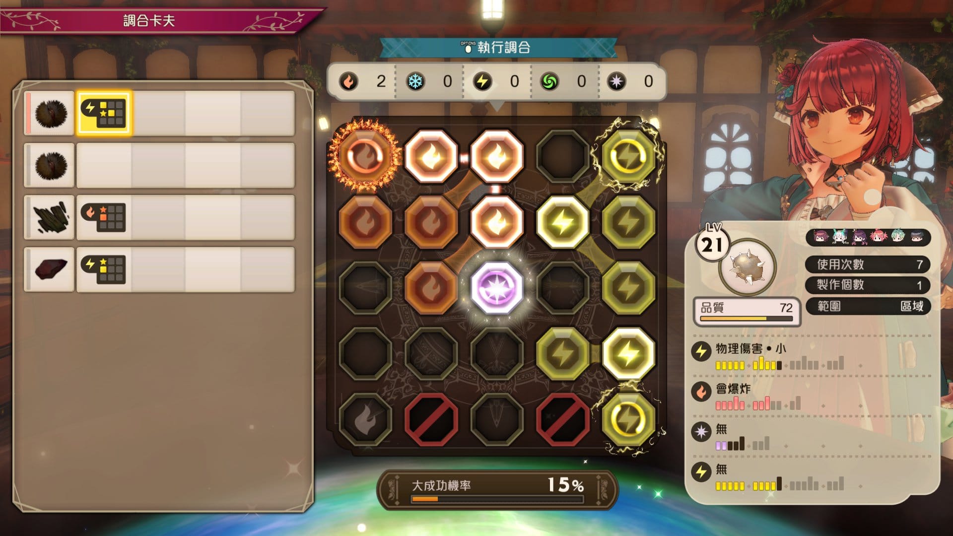 A6︰根據大採集的結果,遊戲初期也可能獲得強力道具,但沒有這些道具依然可以順利破關遊戲。玩家可以根據自己的喜好,把小遊戲當做調合、戰鬥間歇的休息或者進行深度調合的挑戰都可以。
