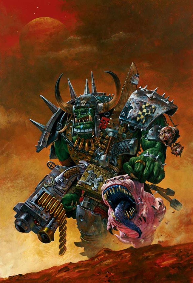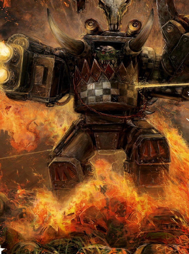 就這樣日復一日,在經過不知道多少次的打架、喝酒狂歡;打更多架、喝更多酒狂歡;打超級多架、喝超級多酒狂歡……不知不覺這顆星球上已經沒有老大敢惹你了。你的塊頭也變得比前更大、更結實。追隨你的小子們也比沙子還要多──你成為了一名貨真價實的戰爭頭目(Warboss)!你認為自己的野心與偉大應該要讓更多人看見,而且你也想打更多架。於是你號召小子們上船,開啟了屬於自己的 WAAAGH! 旅程。