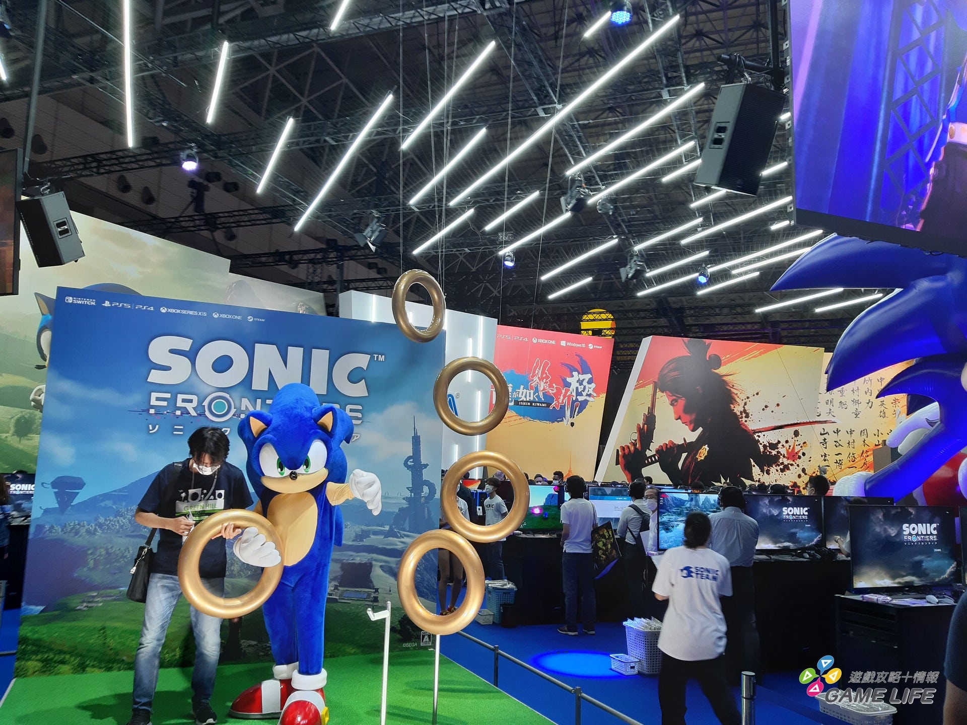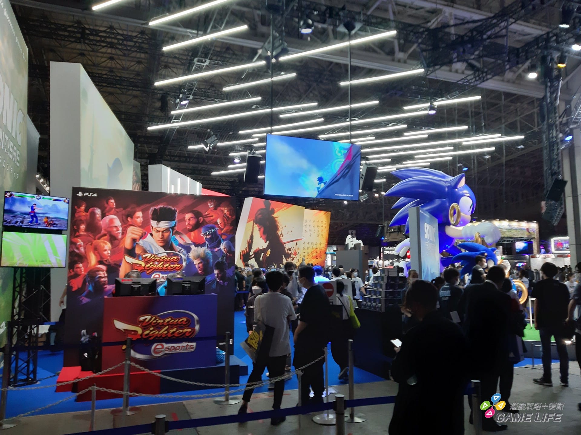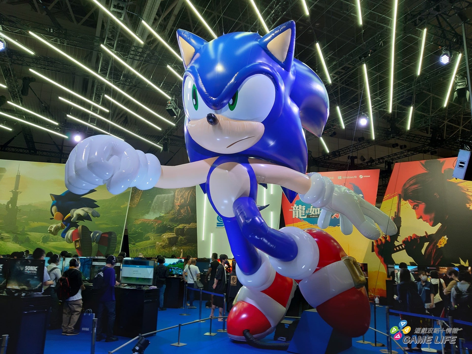 如果玩家從舉辦場所的正門進入的話,最先看到應該會是 SEGA 的攤位,正面映入眼簾的會是 SEGA 代理發行的遊戲,所以可能第一時間看到些歐美遊戲會反應不過來。接著就會注意到一旁的《VR 快打》與《音速小子 未知邊境》,《音速小子 未知邊境》不愧是 SEGA 主力商品之一,現場也弄了個大型索尼克模型給玩家合照與朝聖。