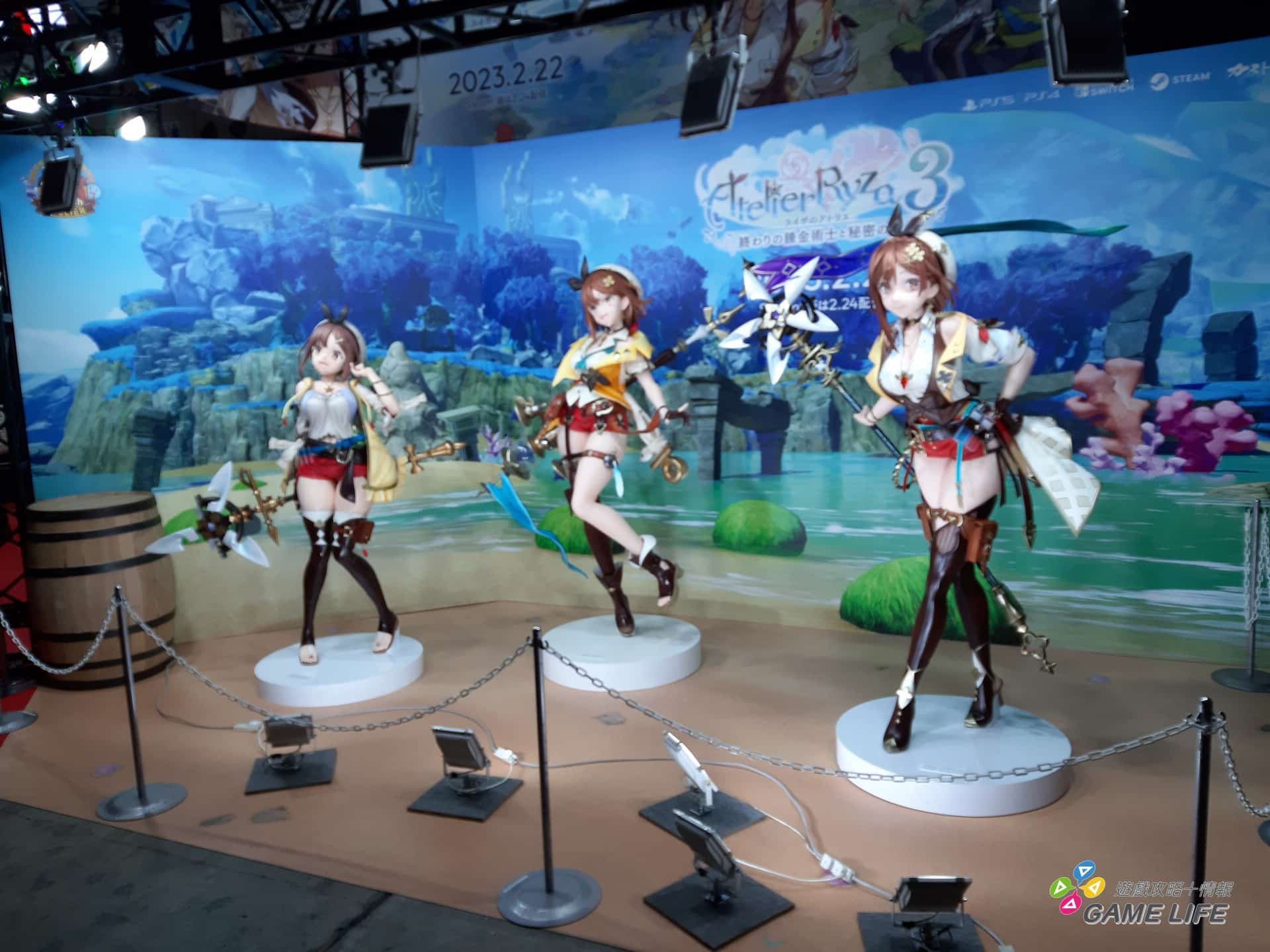 在仍舉辦事前登錄且受到不少玩家關注的《勝利女神:妮姬》對面的就是光榮特庫摩的攤位,光榮特庫摩這回使用了大量 PS5 讓玩家體驗兩款主打作品,《臥龍:蒼天隕落》與《萊莎的鍊金工房 3》,其中《萊莎的鍊金工房 3》攤位還擺出了系列三代的萊莎等身大模型,讓玩家可以實際比較萊莎歷經三代的成長與變化。