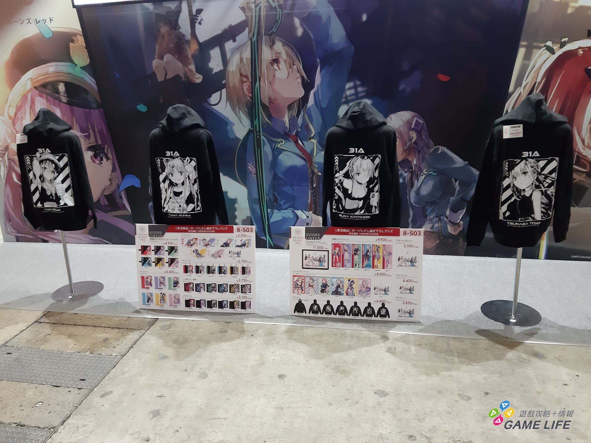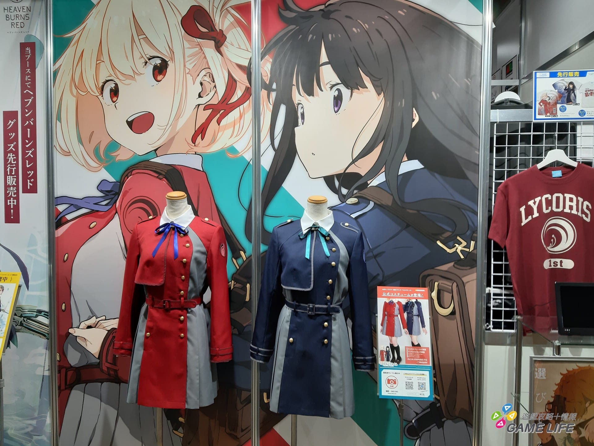 周邊區跟電競區人算是很冷清,不過有趣的周邊產品不少。例如本季很有人氣的動畫《莉可麗絲》的兩位女主角的制服,就馬上擺出來讓玩家訂製。又例如麻枝准主筆的手機遊戲《HEAVEN BURNS RED》也因為其受到好評,在此次展覽也擺出了周邊專櫃讓玩家挑選周邊。