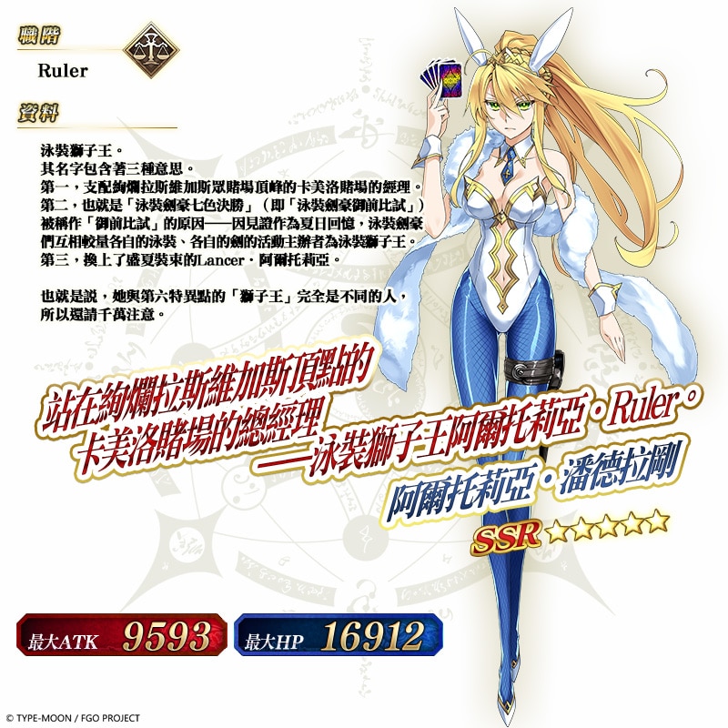 手遊 Fate/Grand Order《命運/冠位指定》繁中版將在 5 月 31 日開放「拉斯維加斯御前比試 PICK UP 召喚 2」,全新從者「阿爾托莉亞・潘德拉剛〔Ruler〕」將與多位從者們同步登場。此外,自 5 月 30 日起的指定週日,更將開放「【週日限定】梅林 PICK UP 召喚」。
