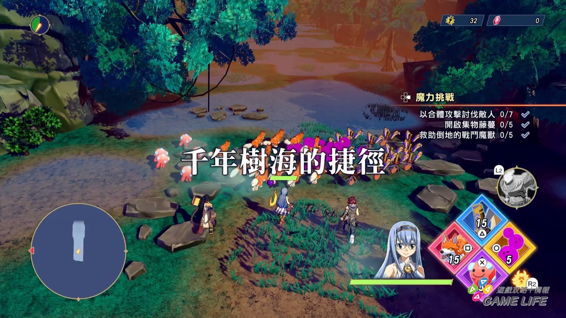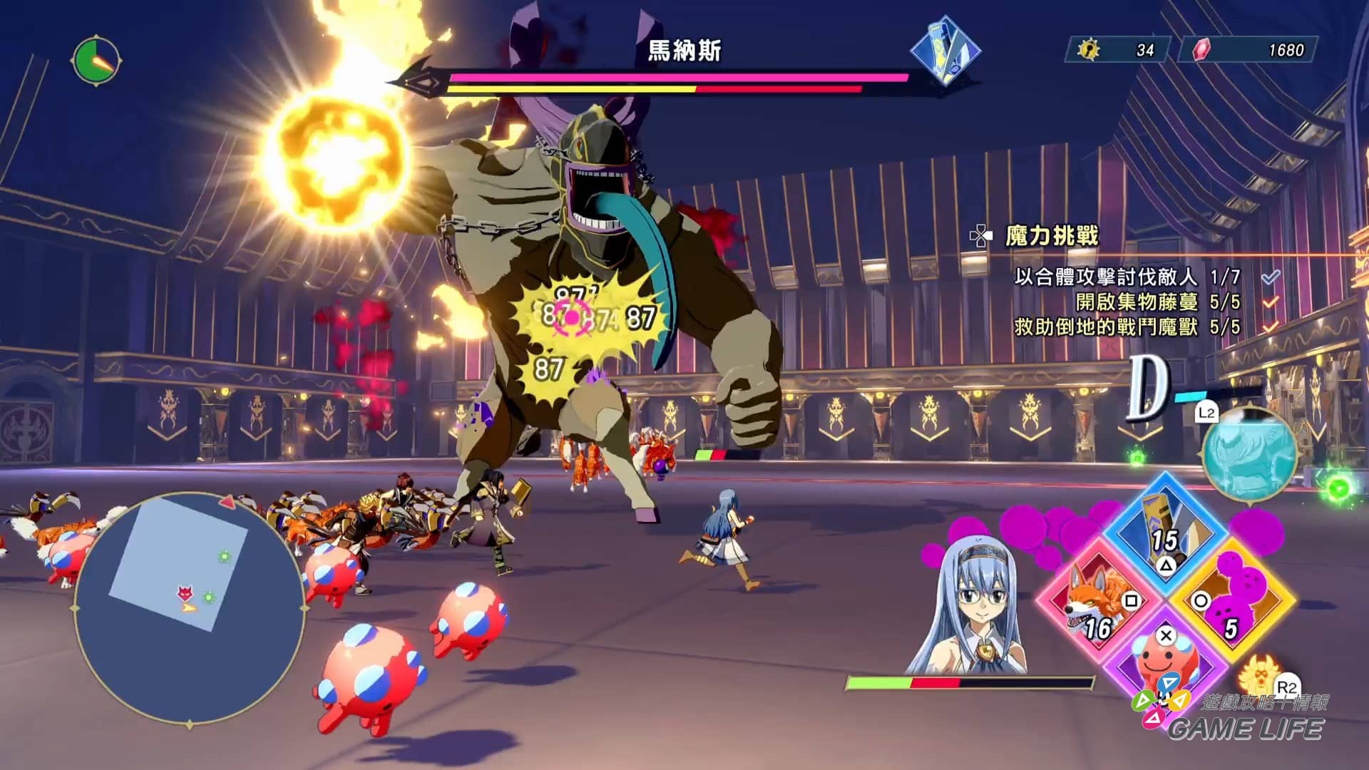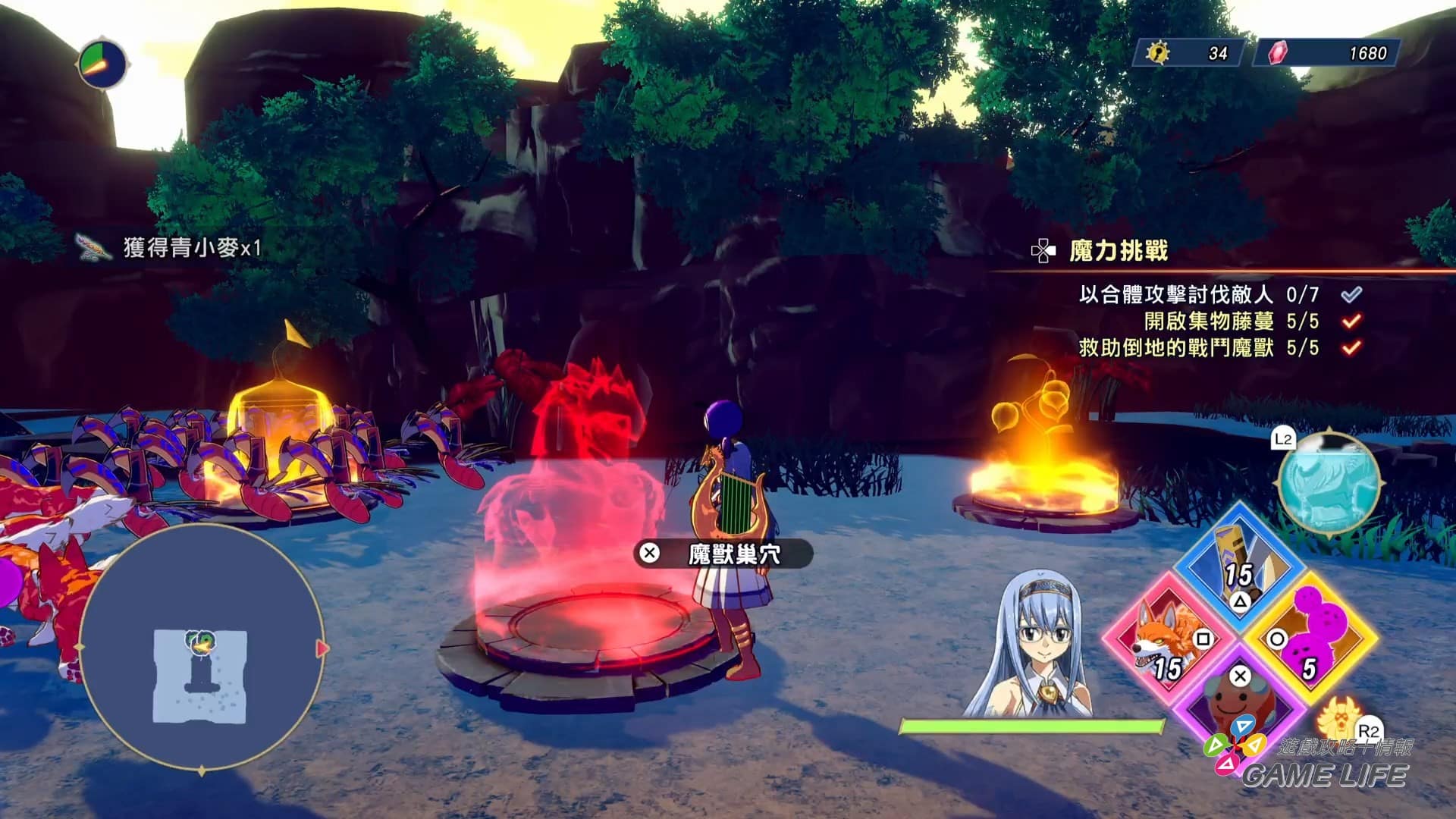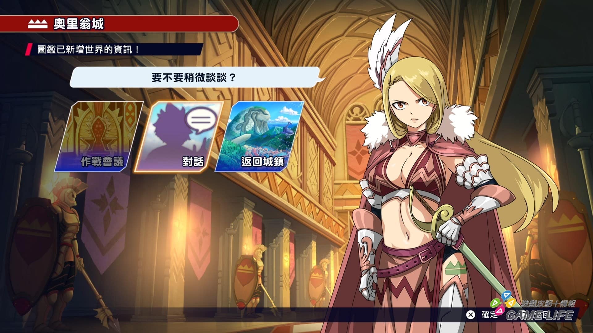 這部份就可以盡情欣賞真島老師繪製的各種帥哥美女,順帶一提劇情進展演出有人物立繪加對話框以及 3D 人物的即時動畫演出,兩者基本上都有聲優熱情演出,對於喜歡真島老師《Fairy Tail》等奇幻風格的玩家來說,應該能夠馬上投入本作的氣氛當中。
