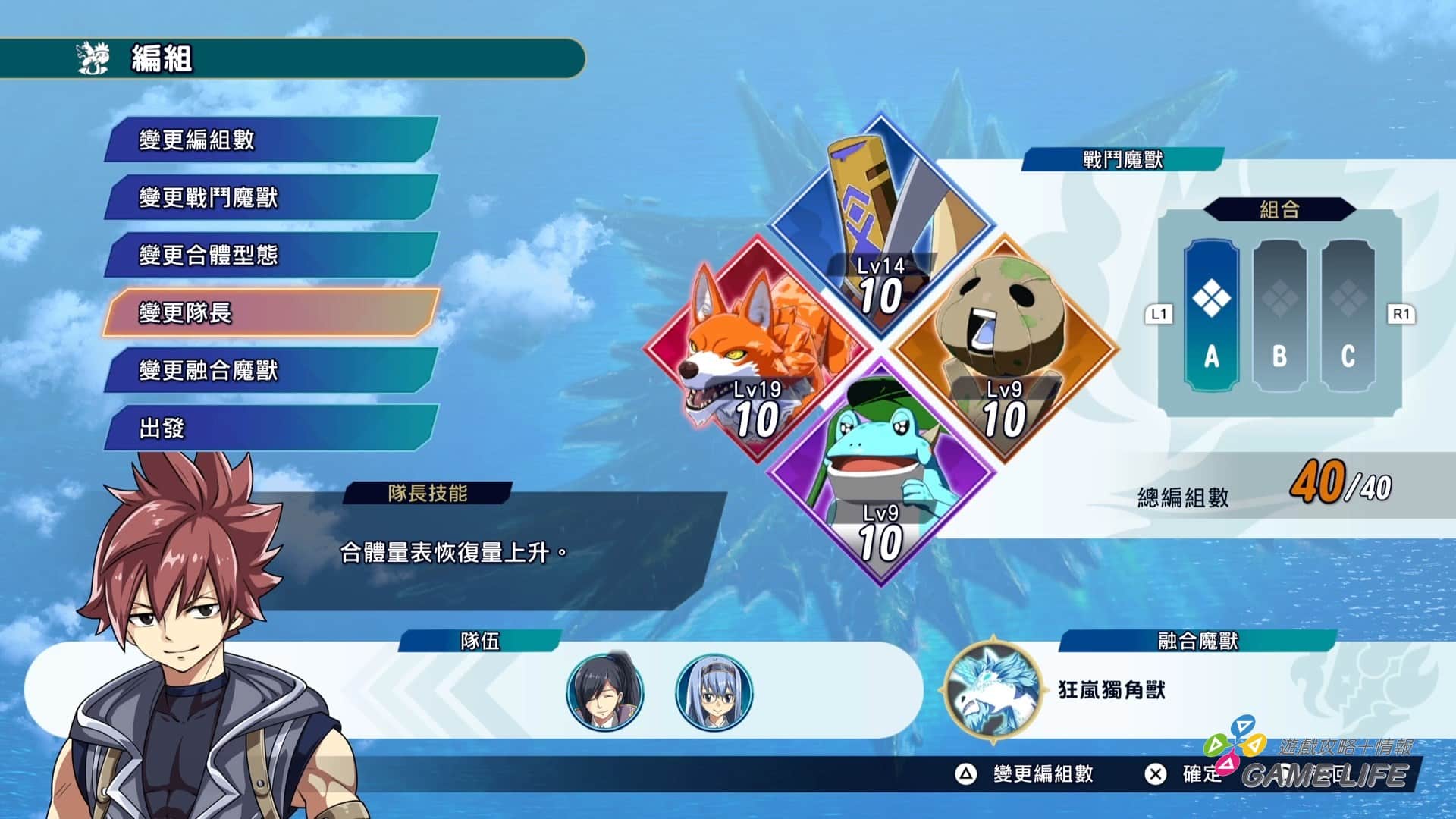 選完魔獸還必須編輯數量,初期能帶的魔獸全部總共 40 隻,會隨著迷宮探索等要素增加上限,四種魔獸玩家要自己調整數量,而魔獸的數量也能代表該項攻擊能夠進行的手數。再來就是挑選領隊,主角「天恩」有著許許多多的「魔農」同伴,每位都有自己的領隊特技,其他同伴也會在探險中進行輔助,整體來說是可以組成一個相當熱鬧的隊伍。