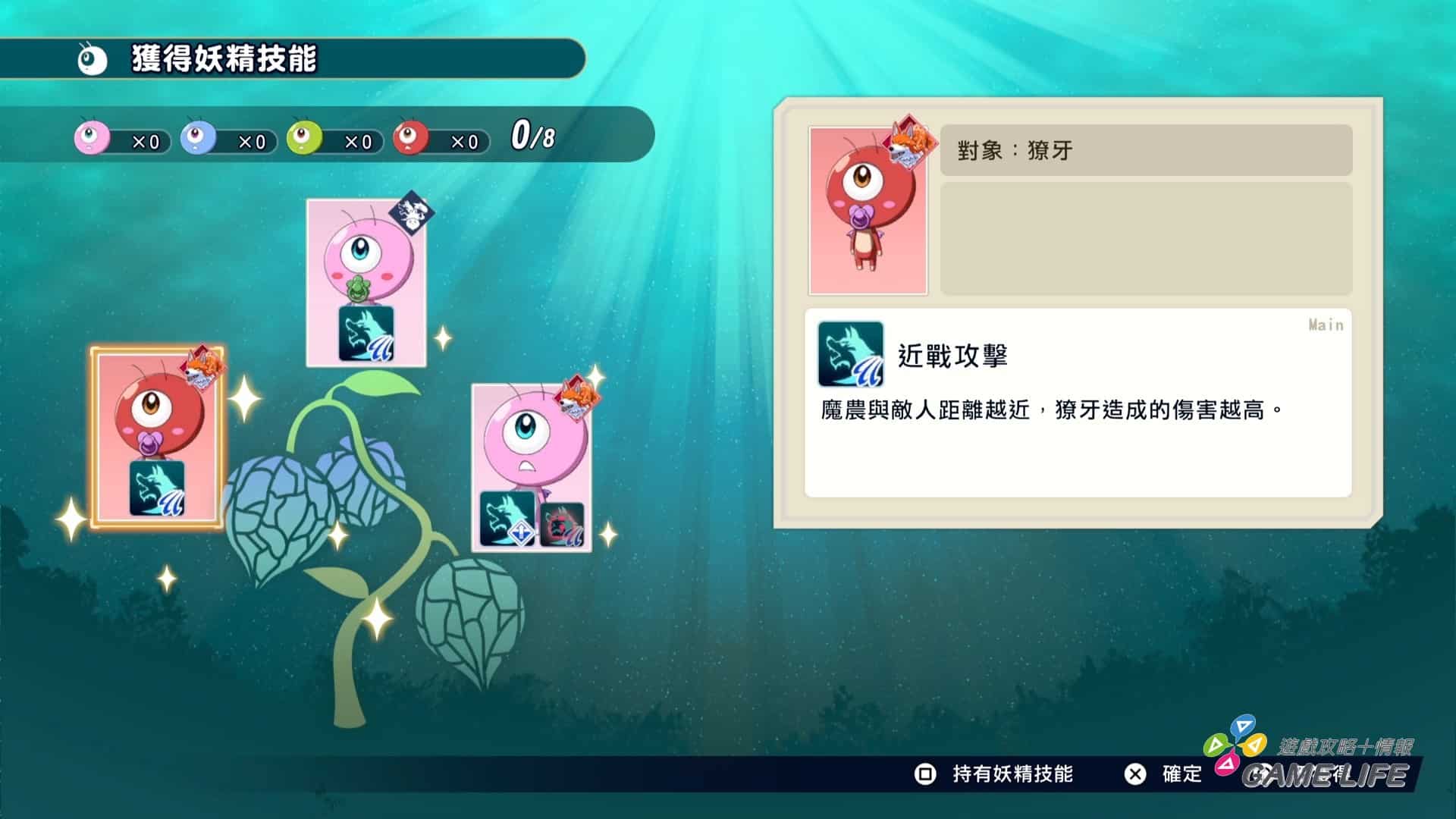 迷宮探索的主要目的有推進主線、挑戰強敵、獲取資源三種,特別是獲取資源最為重要,這遊戲有相當多樣的素材給玩家收集,也看得出是需要反覆探索來累積資源。每一次探索,玩家還可以收集「妖精」,簡單講就是 Roguelike 的強化要素,各種被動技能強化,例如特定魔獸火力上升、魔農移動速度增加等等,雖然離開迷宮就不會保留,但至少能在「這次探索」中有利的強化要素。
