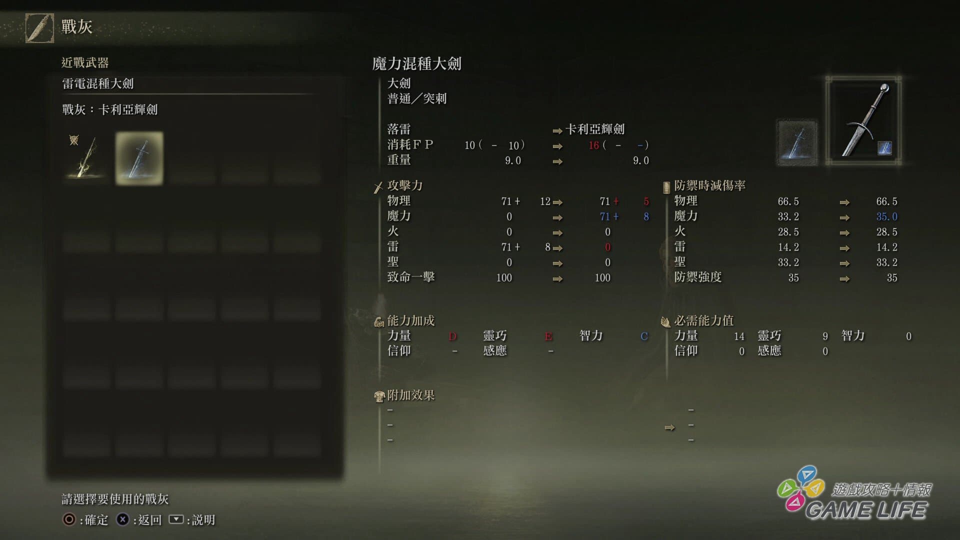 先不論防具,光是左右手就各自能裝五種武具(不論攻防用途),而且戰場上可以使用左右方向鍵切換手持的武具,再加上每一種武具都有自己的魔法或戰技,目的就是要讓玩家準備好多樣化的攻防手段,來面對本作難度更高的強敵與眾多的敵人。