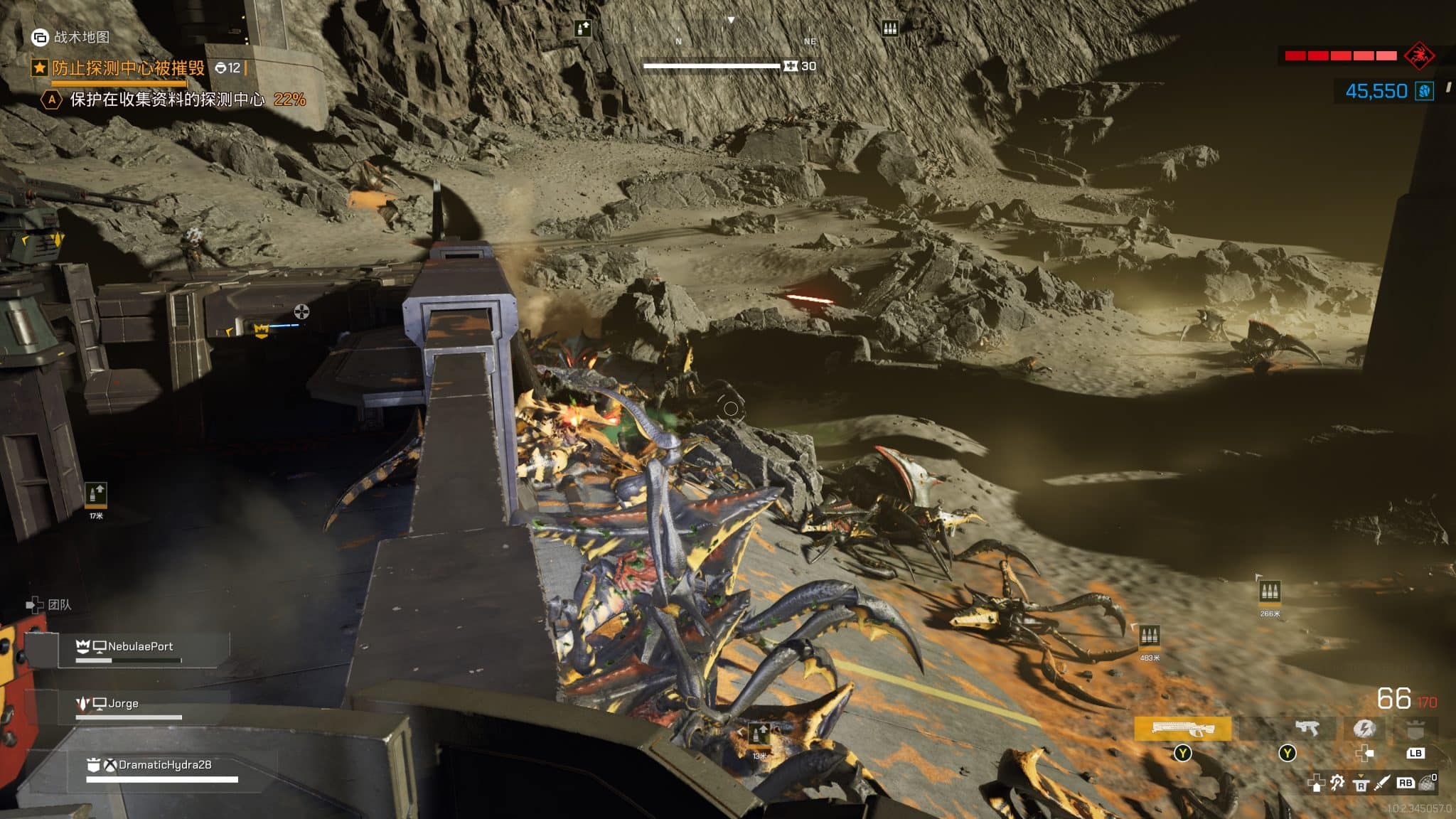 單人模式的拉垮屬實可惜,不過多人模式做為主要賣點,完全能夠支撐起遊戲的內容量。遊戲任務有四種,推進、探測、蟲群和巢穴。推進要清除著陸區,完成階段性任務。探測要一邊保衛基地,同時還需要一隻敢死隊,前往挖掘素材。蟲群則是很典型的持久戰模式。巢穴比較特別,只有四名玩家要深入蟲巢安裝核彈。