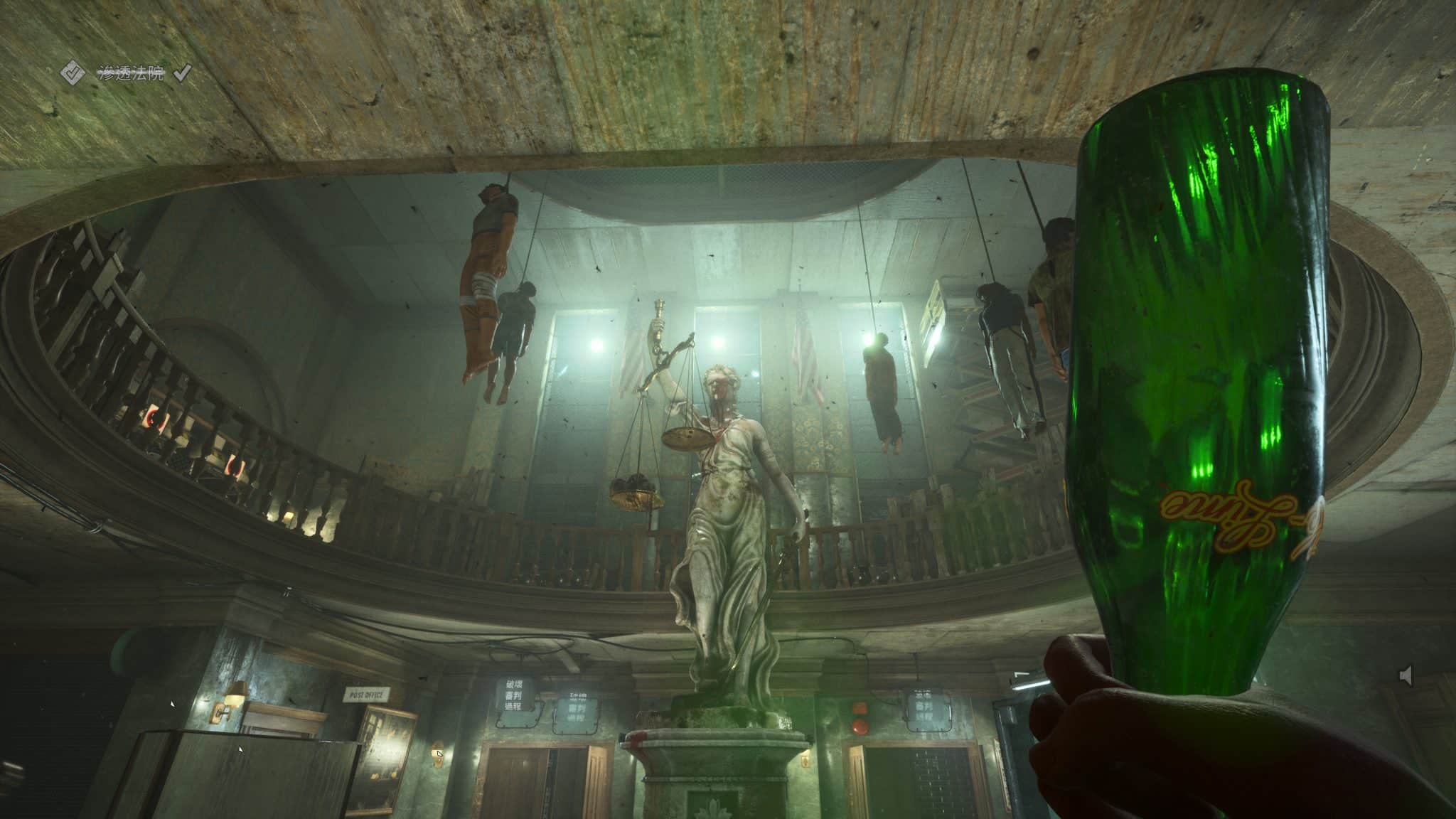 第二種是長時間互動。警察局要電刑告密者,孤兒院要鋸斷耶穌的腿。推電閘需要很長的時間,過程中目標還會發出尖叫吸引敵人。我們要待在原地不動,同時注意四面八方,看到人來了要放手馬上跑,抓準空擋回去繼續推電閘。這種繃緊神經的體驗,就是一款成功的恐怖遊戲該有的要素。
