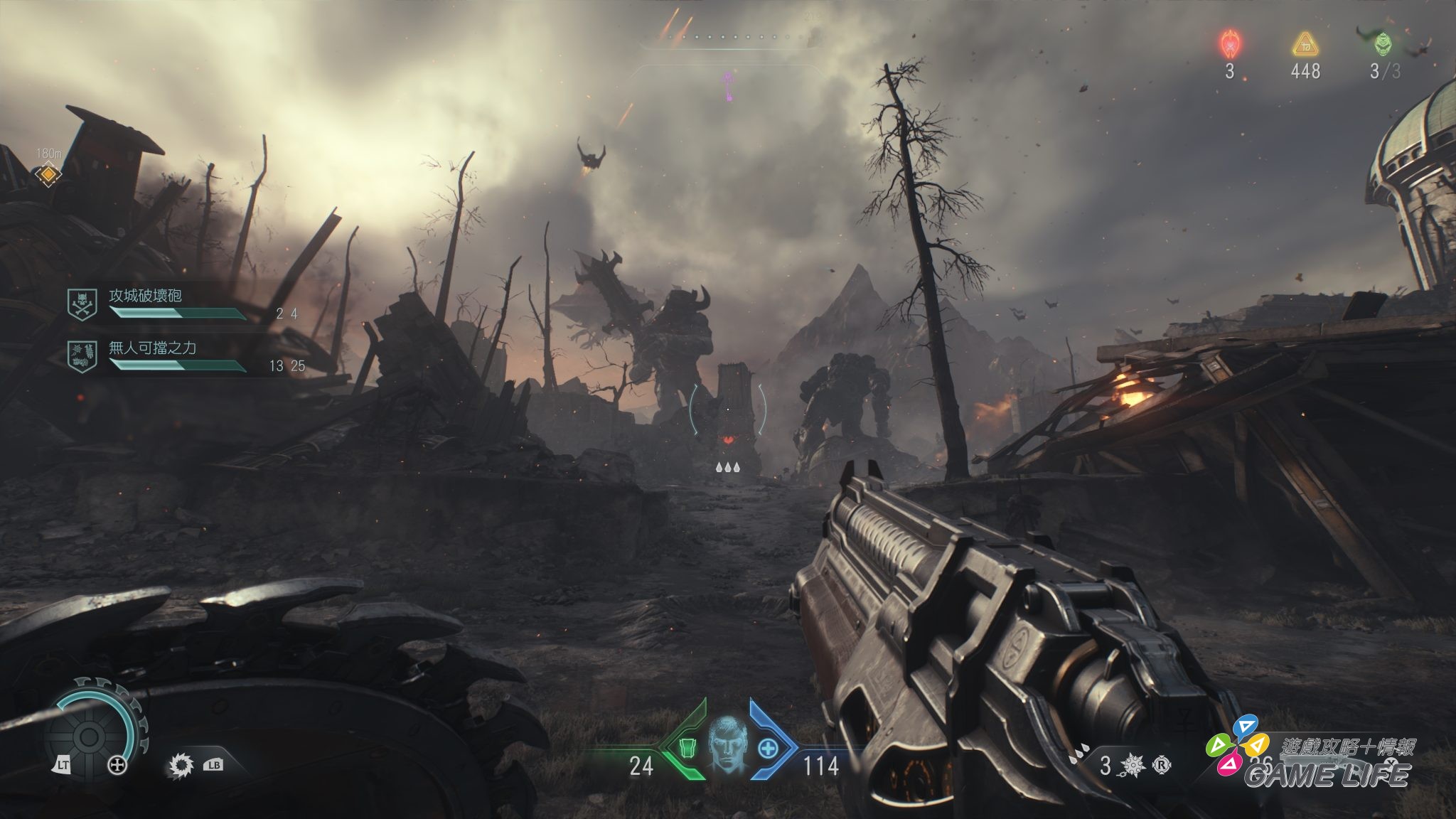殺戮工具依舊是《毀滅戰士》的靈魂之一。《黑暗時代》在這方面並未讓人失望,經典與創新完美融合。招牌的雙管霰彈槍依然強勢,能把眼前的惡魔炸成肉塊。破壞槍與加速器作為連發類主武器,射速高、子彈多,非常適合用來對付雜兵與剝除高護甲單位。