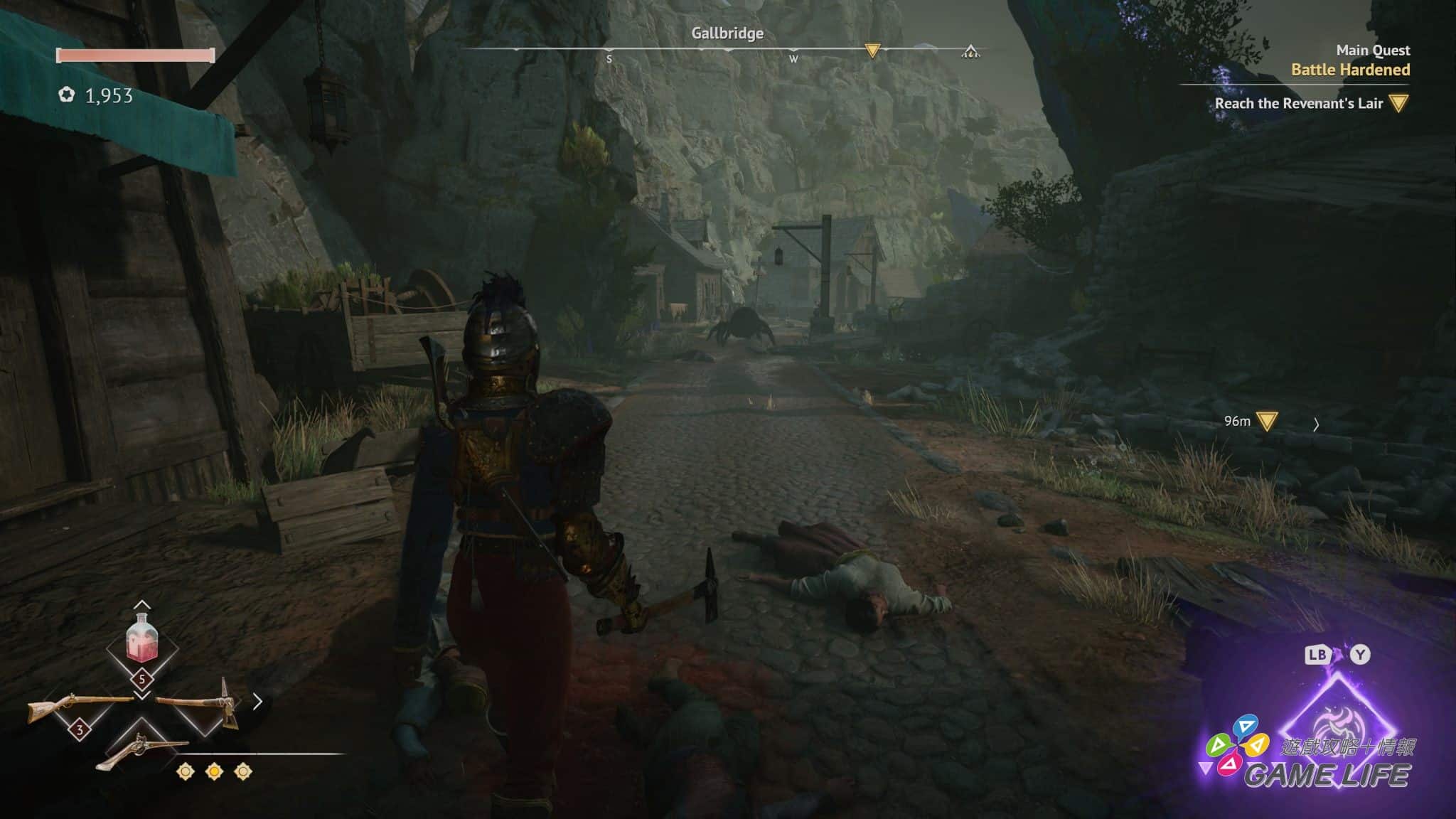 遊戲給我的第一印象還是相當不錯,主角身著一戰軍服,手持遂發槍,在戰壕中與神明的亡靈大軍作戰。這聽起來很像是 B 級片才有出現的內容,不過製作團隊還是營造出戰爭規模的大場面,背景時不時傳來的砲擊聲,遠處的大部隊正在進軍。能感覺到開場燃燒不少經費,而且多種要素結合出來的場面非常耳目一新。只不過序章結束後,後面的關卡又回到中世紀奇幻 RPG 的原始大陸與城堡,可惜了開場獨特的設計。