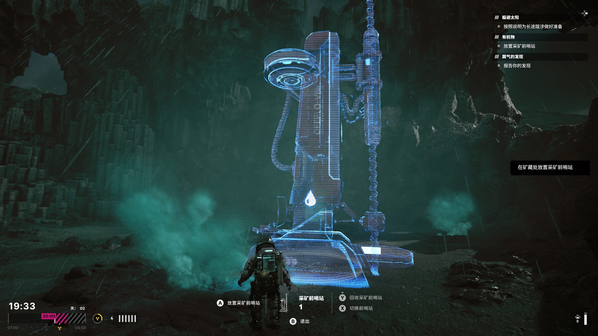 地圖互動內容主要圍繞三件事:在礦點架設挖掘機、清除災異點、收集個人物品。找到礦源、架好機器、拉線回基地後,挖掘流程就近乎自動化;災異點則是小型戰鬥,用手電筒破壞核心來換取萬用資源;而分身的個人物品有助於推進劇情與紓壓。