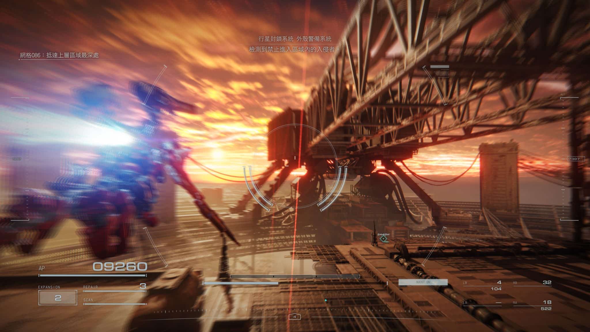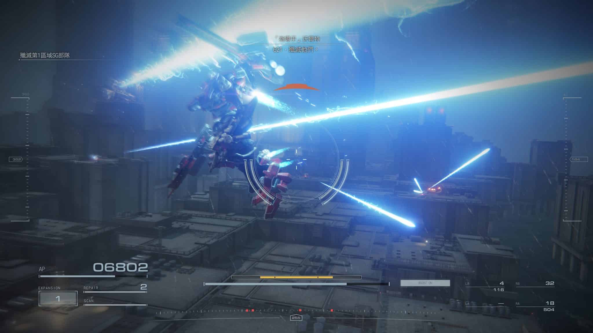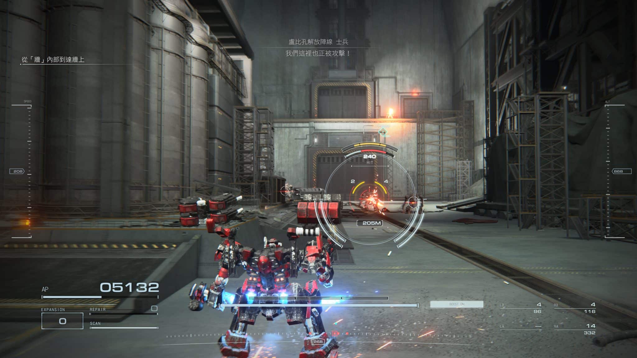 這代加入隻狼的體幹值系統也加快戰鬥節奏。不管敵我雙方,受到一定程度的傷害會進入踉蹌模式,這時不只機體會無法動彈,受到的傷害也會大幅增加。如何持續攻擊快速讓對手進入踉蹌狀態,又能保持火力輸出,成為機體武裝配置的優先考量。