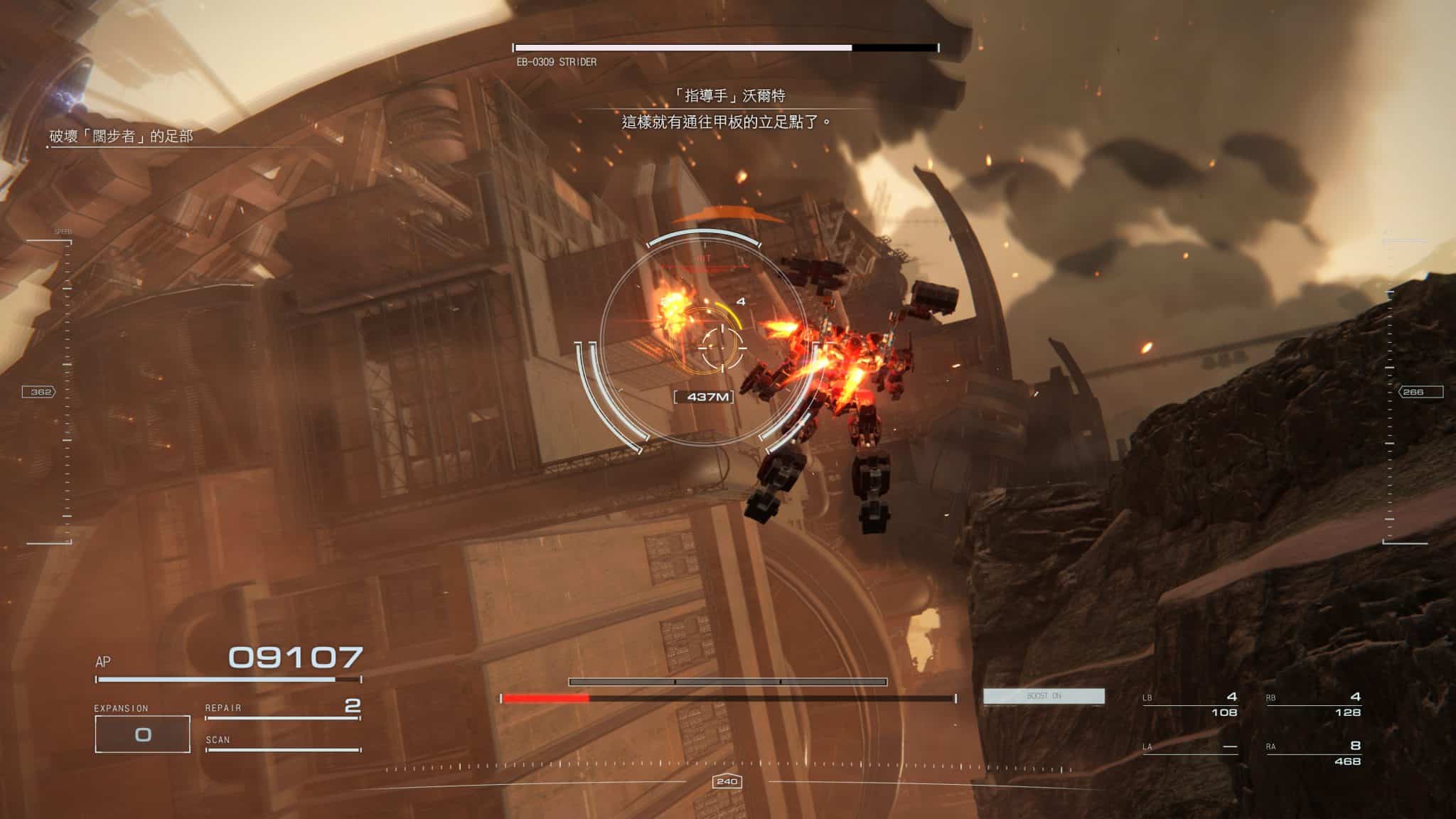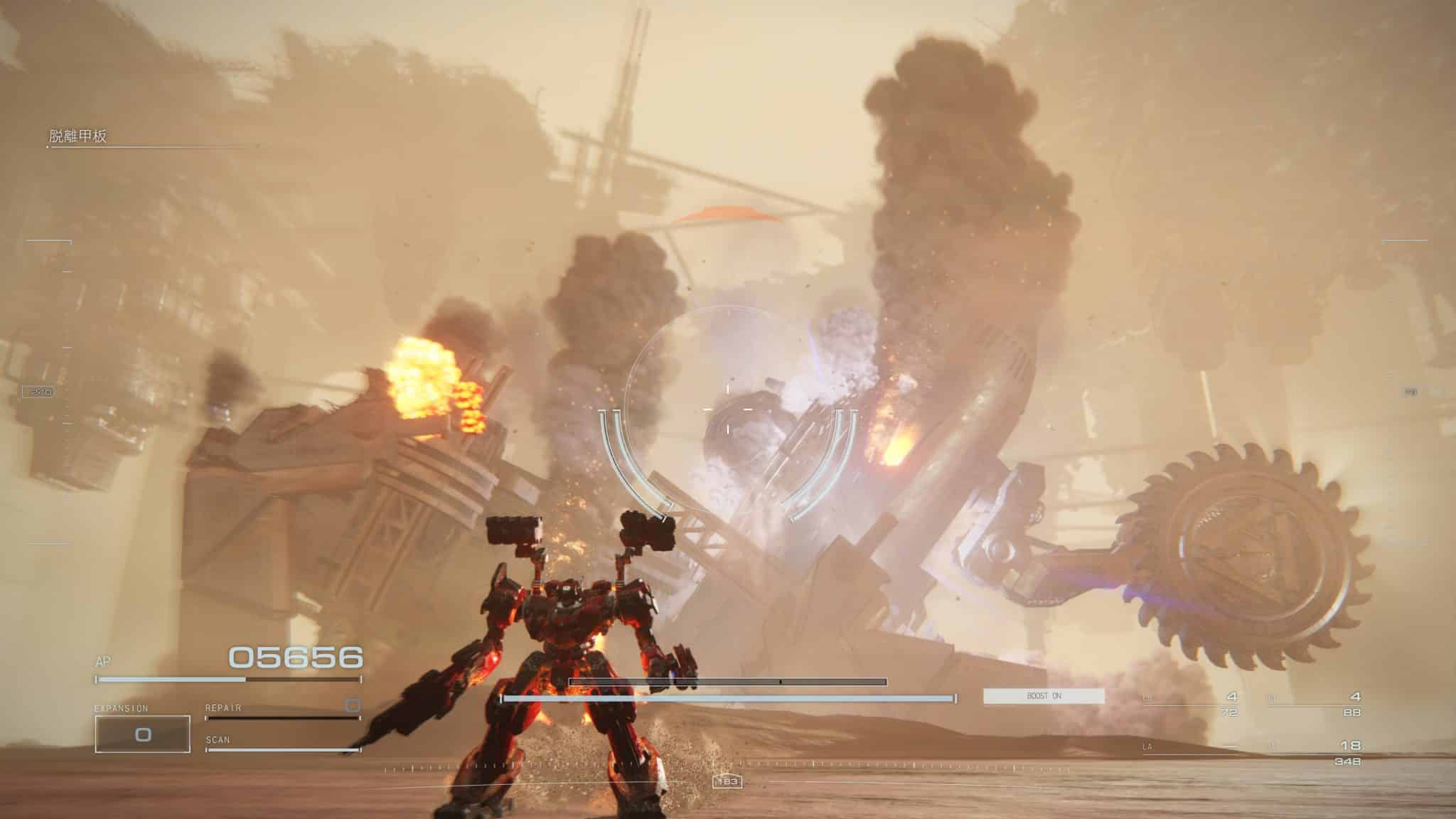 比起魔王的攻擊,真正讓我無法承受的是視覺轟炸。噴射器的煙霧特效、爆炸的火焰粒子特效,再加上一台機動性極高的機體,眼花撩亂的視覺效果跟不斷轉動的畫面,對眼睛的殺傷力很高。我是個不太會 3D 暈的人,都玩到有點不舒服,體質弱一點的扛都扛不住。