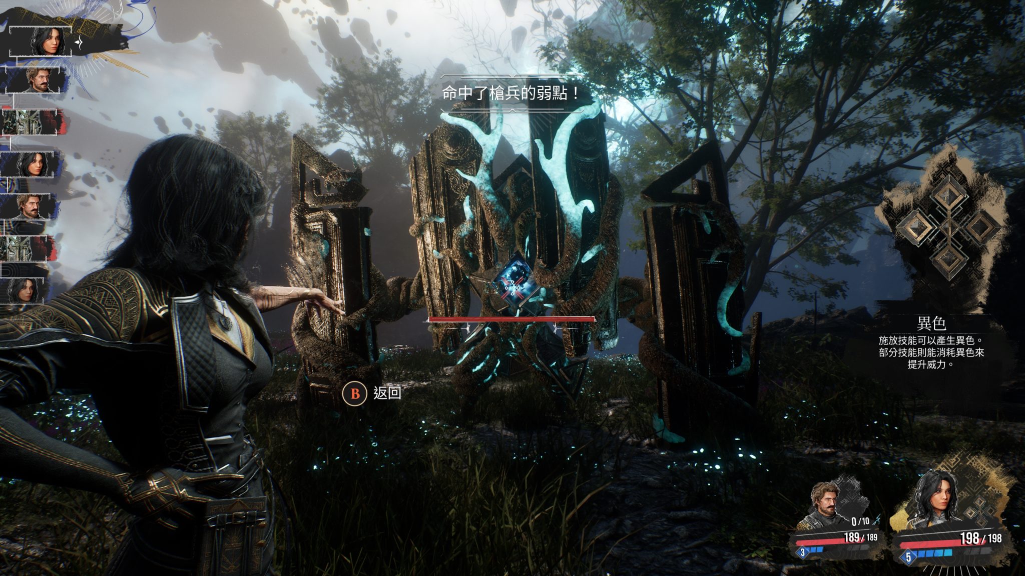 在動作的平衡之外,遊戲的策略也有足夠的深度,每位遠征隊成員有各自獨特的玩法。瑪艾兒能藉由技能切換戰鬥姿勢,不同姿勢提供不同 Buff;露涅則需累積並消耗屬性元素來強化法術。每名角色的機制都設計得很有個性,讓我在操作之外,也能享受回合制特有的技能搭配與戰術規劃。